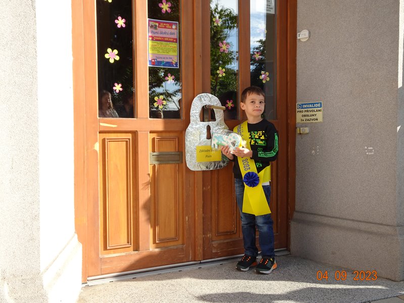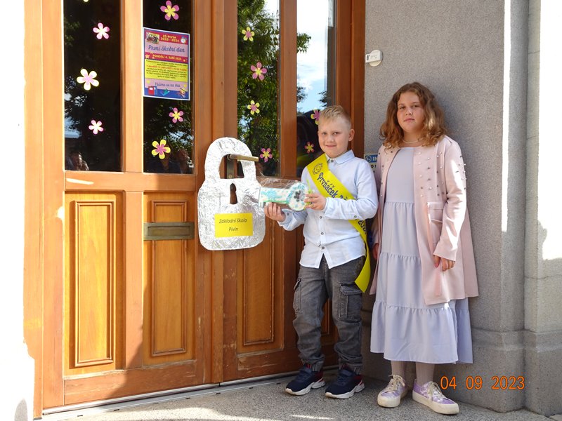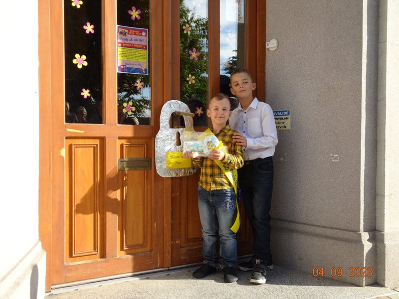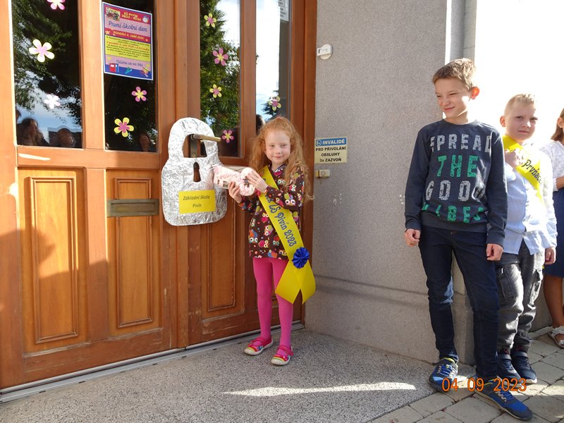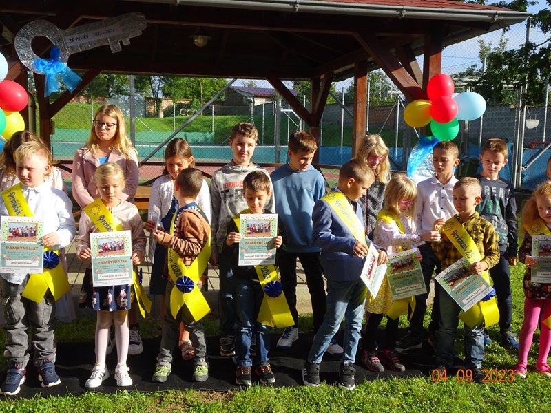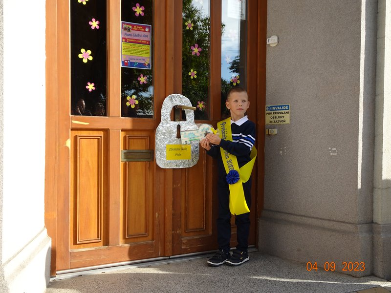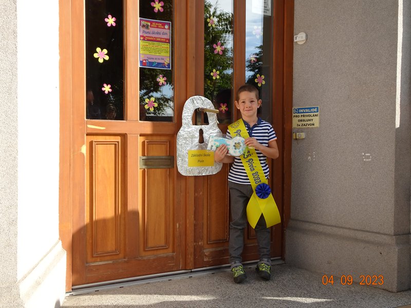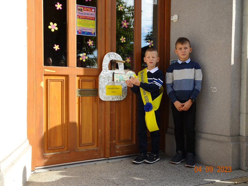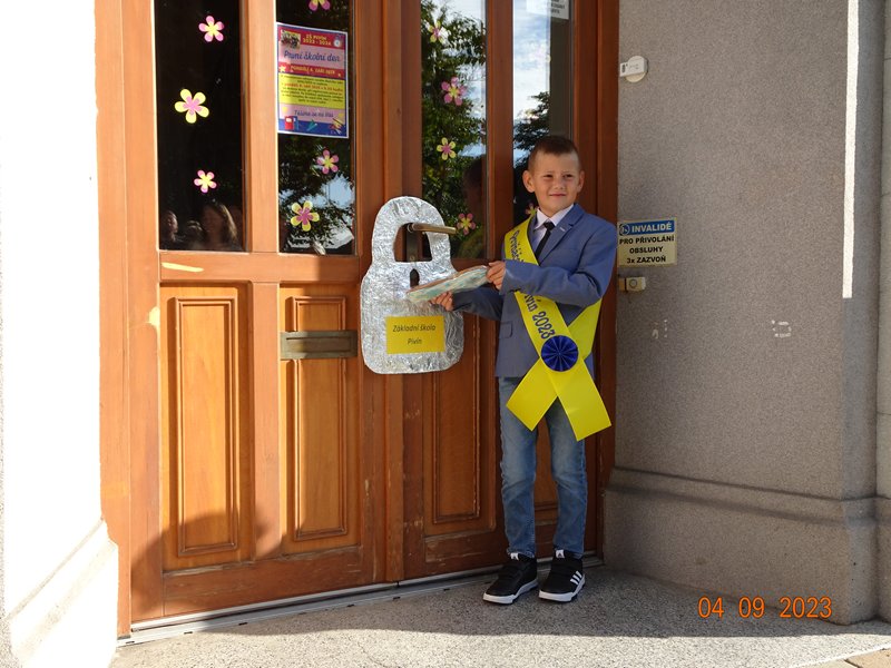 Nejdříve všechny žáky přivítala paní ředitelka a poté pan starosta. Své mladší kamarády přivítali i žáci a žákyně starších ročníků. Po slavnostním šerpováním Eliáš, Matyáš, Filip, Laura, Leontýna, Andrea, Samuel, Marek a Jeník odemkli krásným perníkovým klíčem (děkujeme paní Zatloukalové) svoji školu a vydali se do své nové třídy. Prvňáčci, přejeme vám, ať se vám ve škole líbí a zažijete v ní mnoho úspěchů. Úspěšný školní rok 2023/2024 přejeme také všem žákům, jejich rodičům i paní učitelkám.