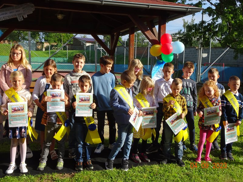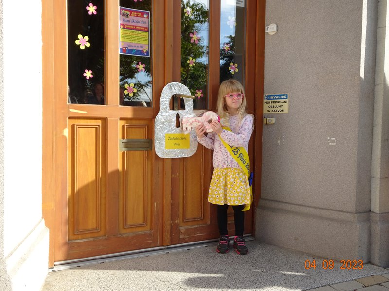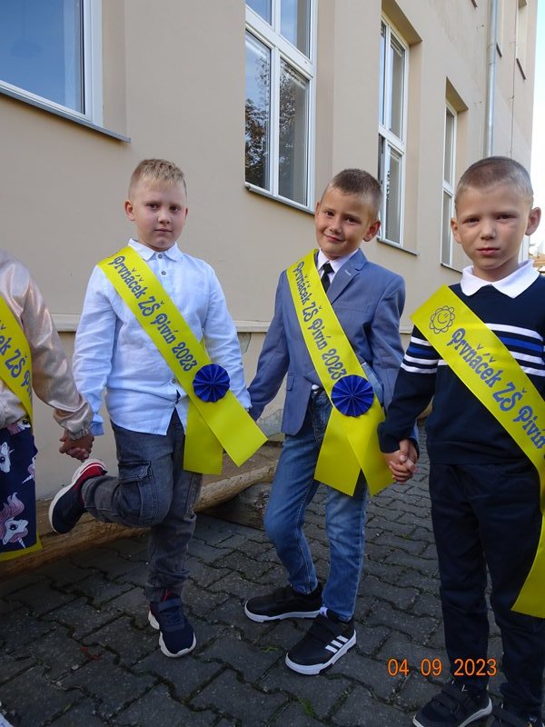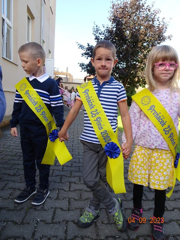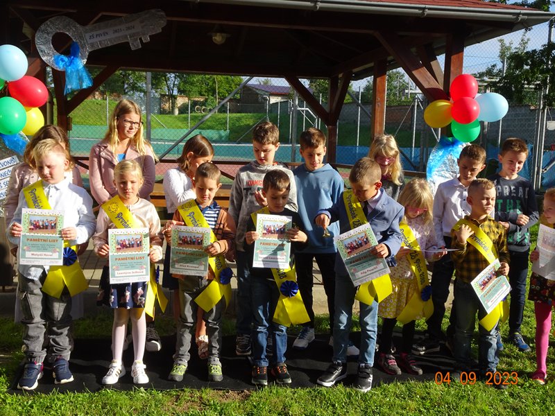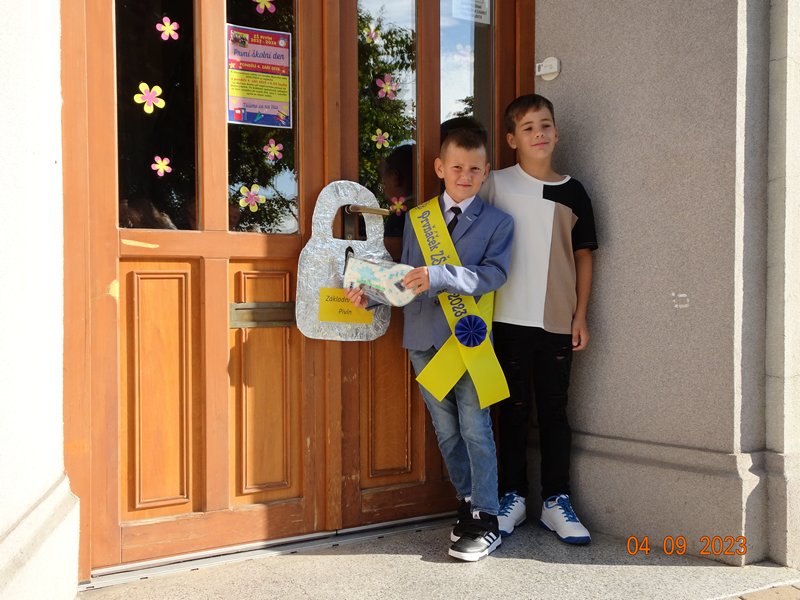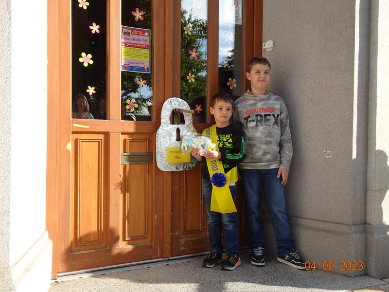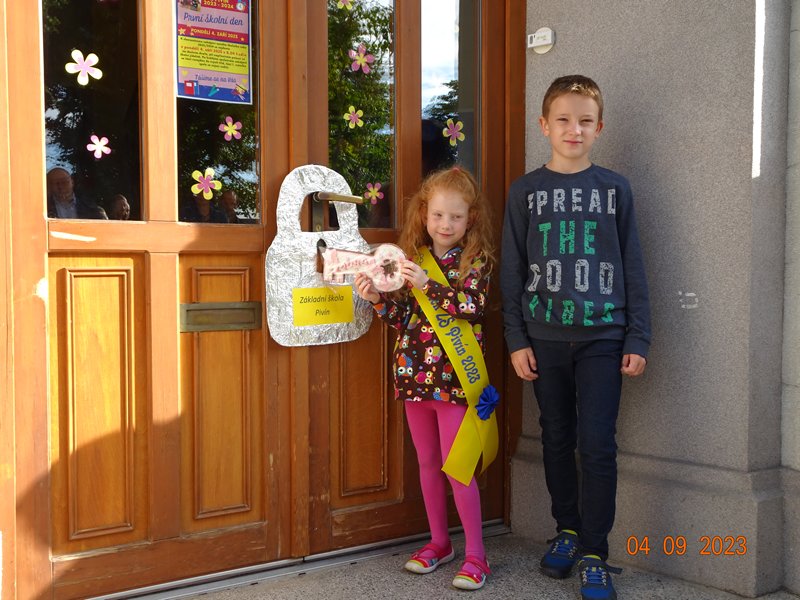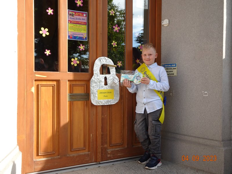 Nejdříve všechny žáky přivítala paní ředitelka a poté pan starosta. Své mladší kamarády přivítali i žáci a žákyně starších ročníků. Po slavnostním šerpováním Eliáš, Matyáš, Filip, Laura, Leontýna, Andrea, Samuel, Marek a Jeník odemkli krásným perníkovým klíčem (děkujeme paní Zatloukalové) svoji školu a vydali se do své nové třídy. Prvňáčci, přejeme vám, ať se vám ve škole líbí a zažijete v ní mnoho úspěchů. Úspěšný školní rok 2023/2024 přejeme také všem žákům, jejich rodičům i paní učitelkám.