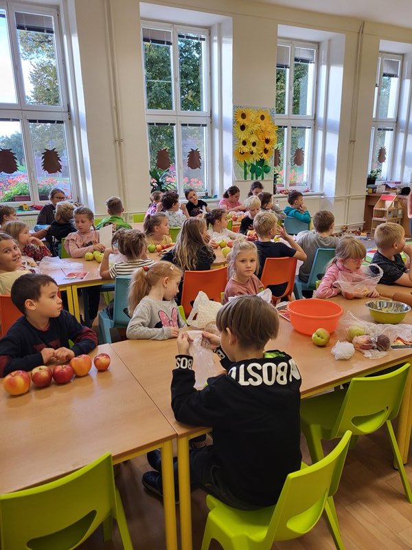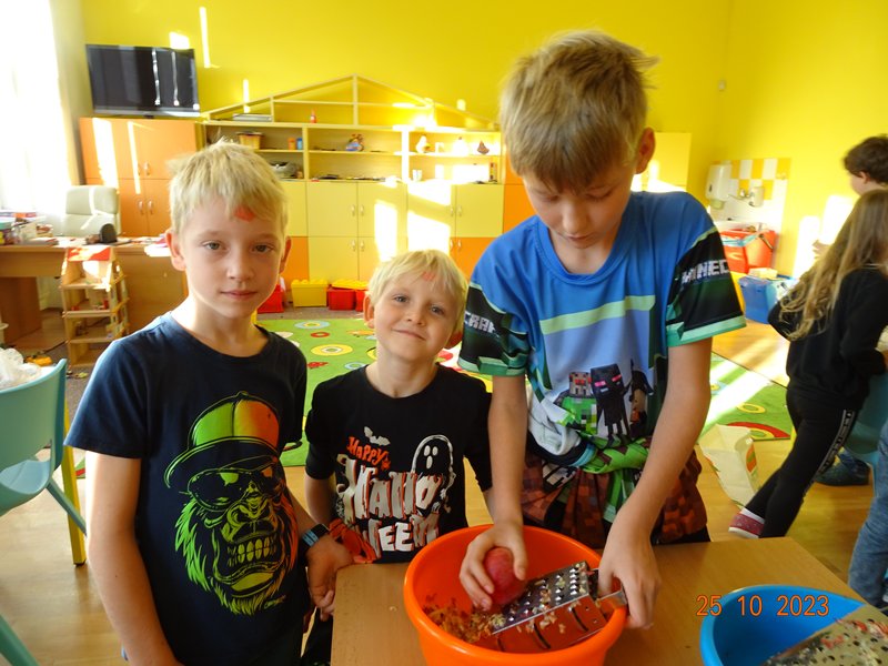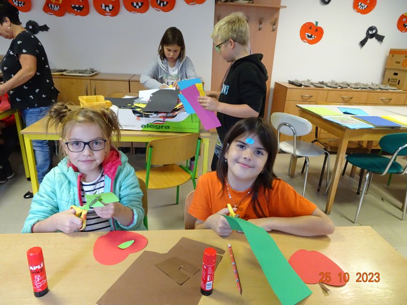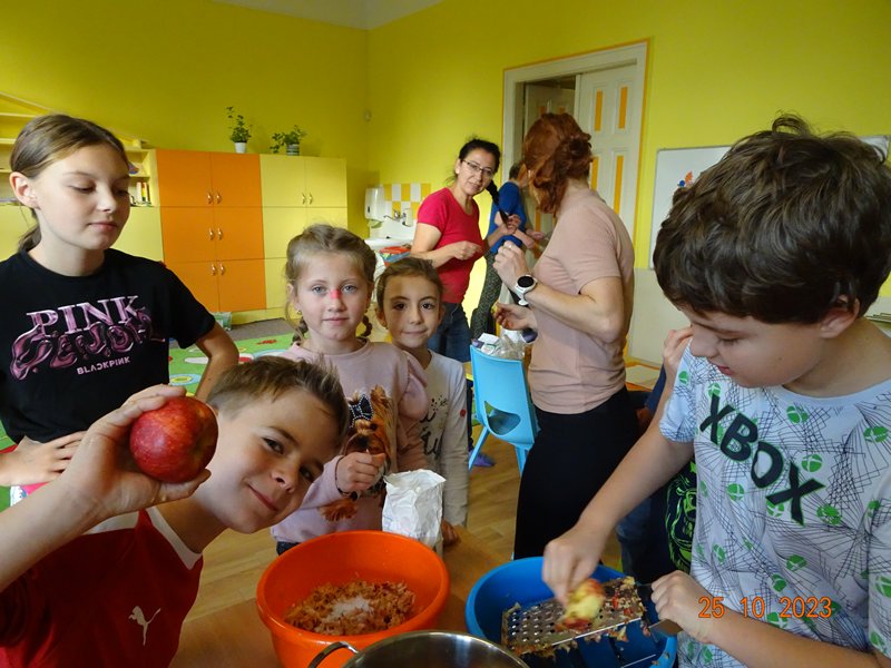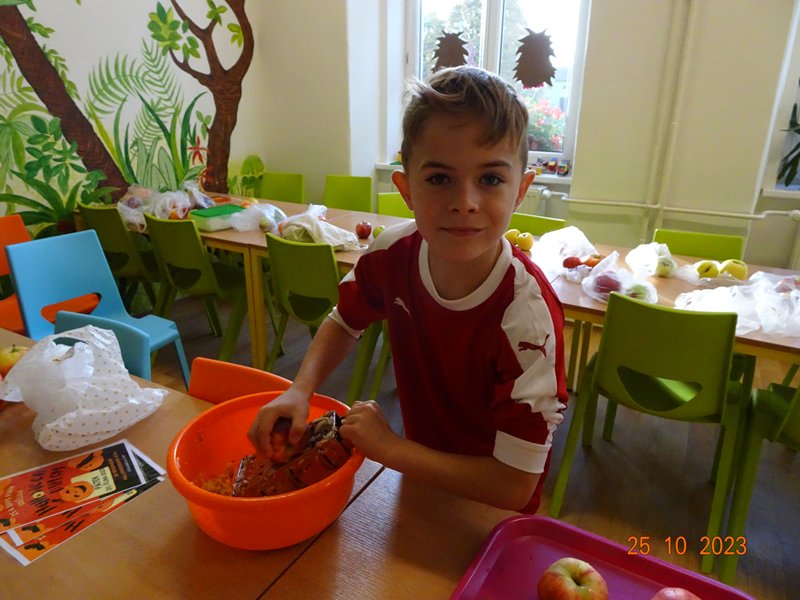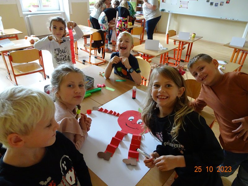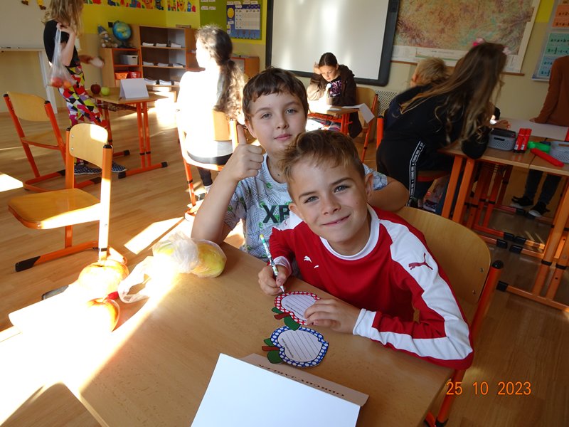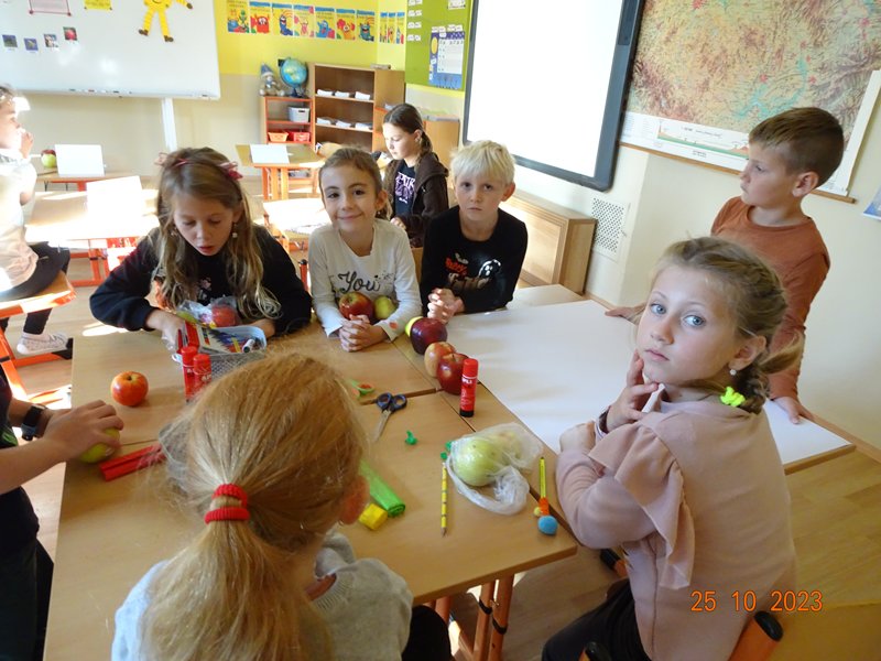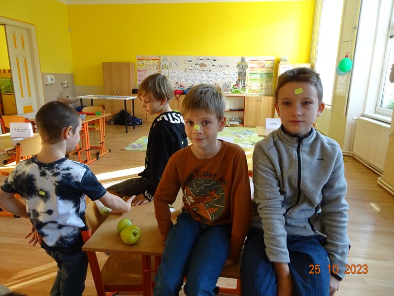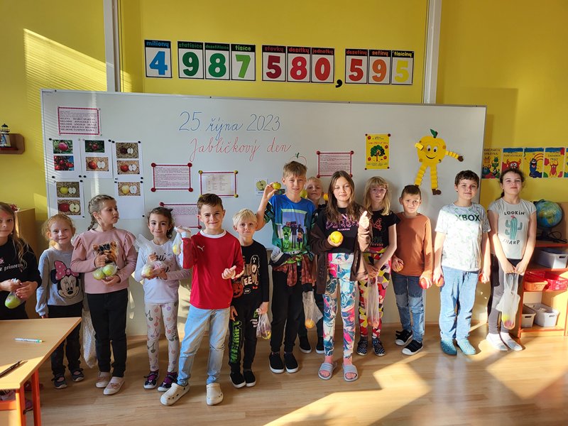 Ve středu 25. října 2023 se opět celou naší školou linula jablíčková vůně. Konal se totiž další tradiční Jablíčkový den. Děti se hned ráno rozdělily do tří skupin – červené, modré a žluté, které se během dopoledne vystřídaly na třech stanovištích.