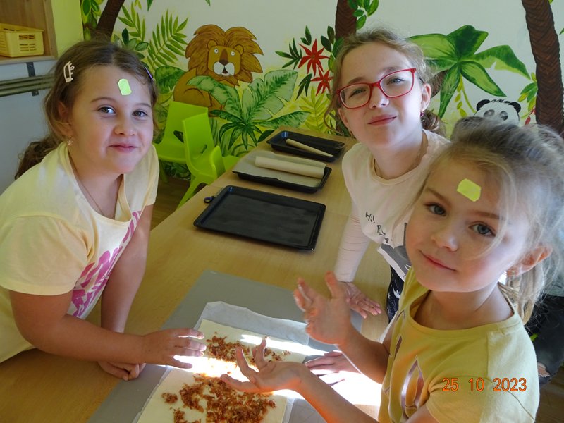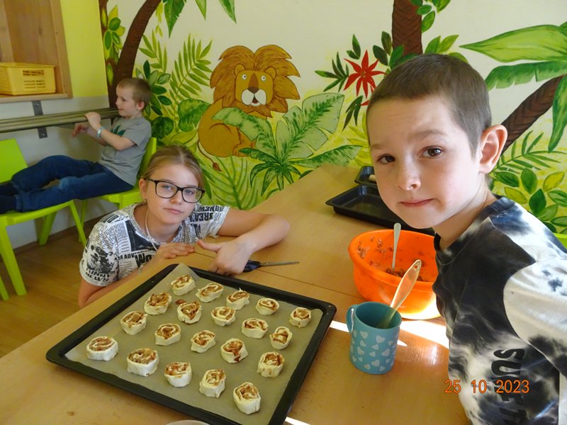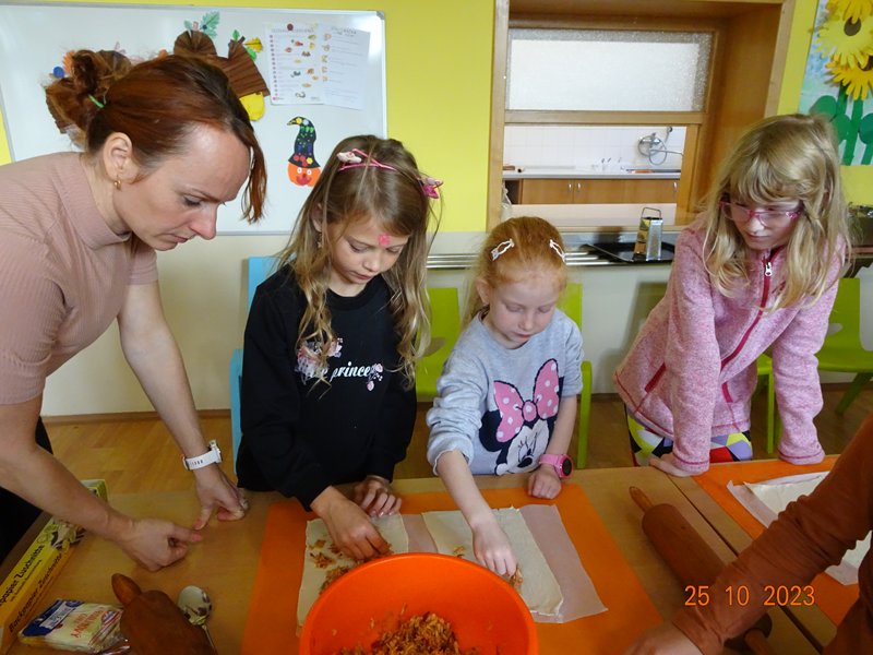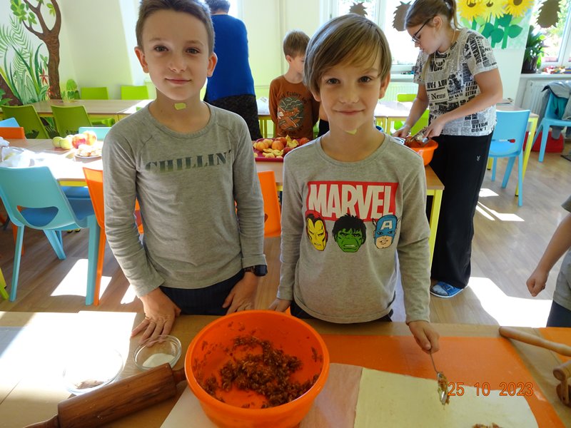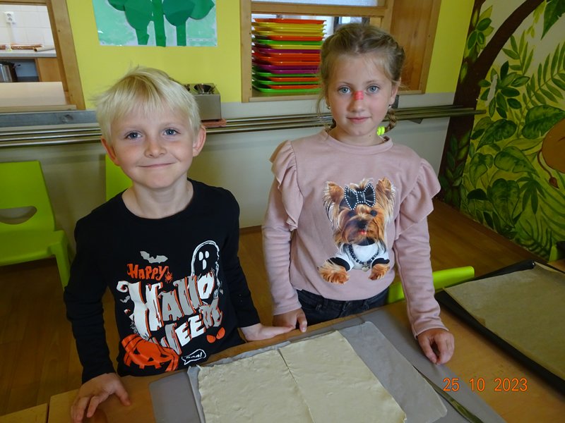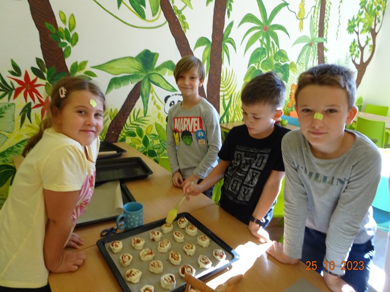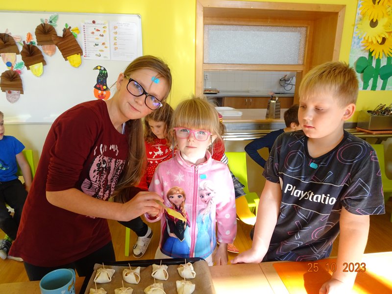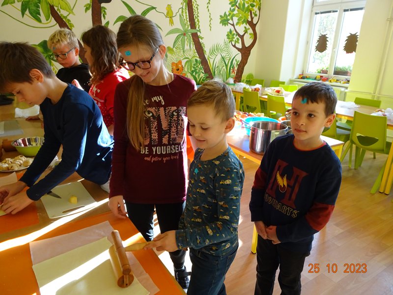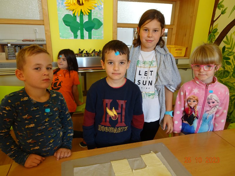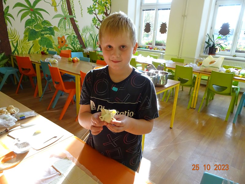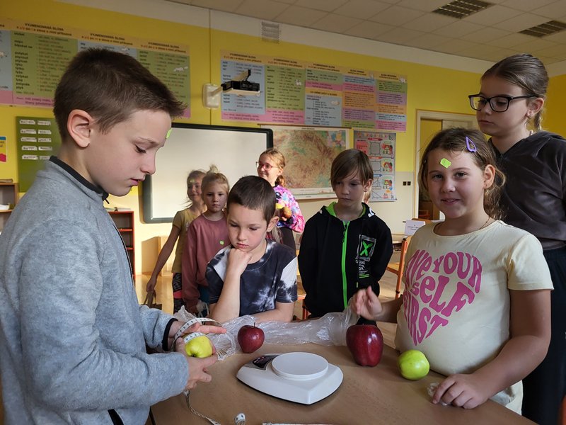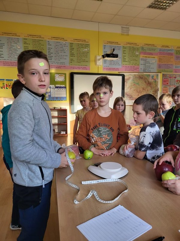 Na 1. stanovišti jsme měřili a vážili největší a nejmenší jablko, seznámili jsme se s různými odrůdami jabloní, s jejich pěstováním a využitím. Skládali jsme puzzle, vyhledávali informace a hádali hádanky. Na 2. stanovišti jsme výtvarně zpracovávali téma jablíček – malovali a lepili jsme jablíčka a na 3. stanovišti jsme pekli z jablíček různé dobroty – štrúdl, jablka v župánku a další dobroty.
