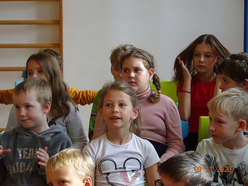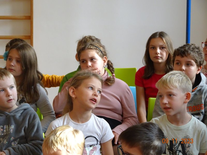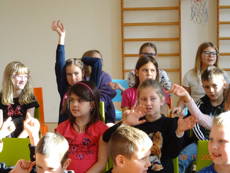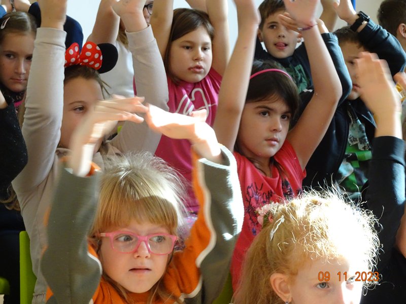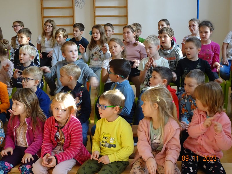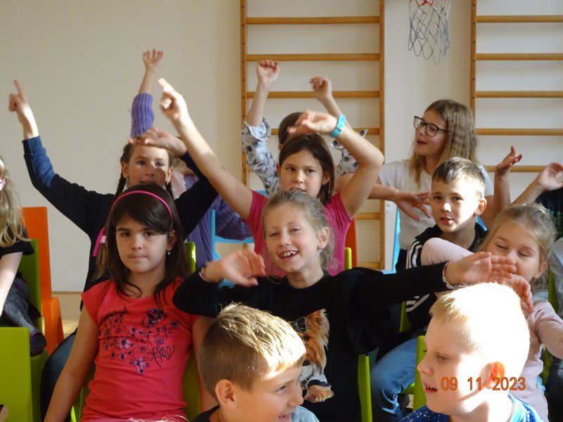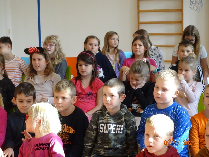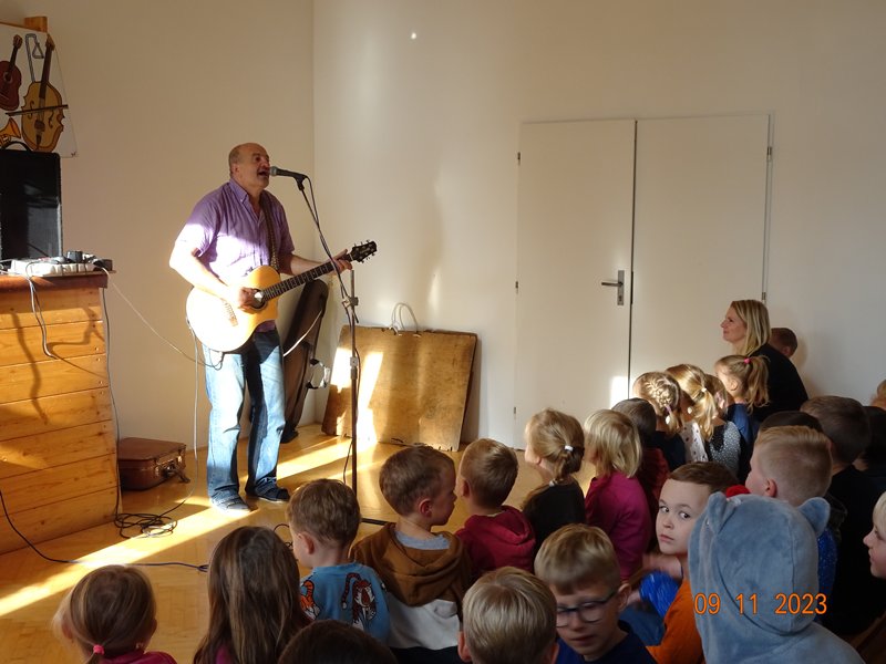 Ve čtvrtek 9. listopadu 2023 nás dopoledne navštívil hudebník Kamil Čapčuch s hudebním pořadem Zpívánky. Ve čtyřech blocích dětem přiblížil pojmy z hudebního světa, které propojil svým zpěvem, do něhož zapojil děti nejen ze základní školy, ale také z mateřské školy.