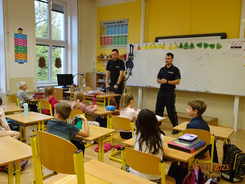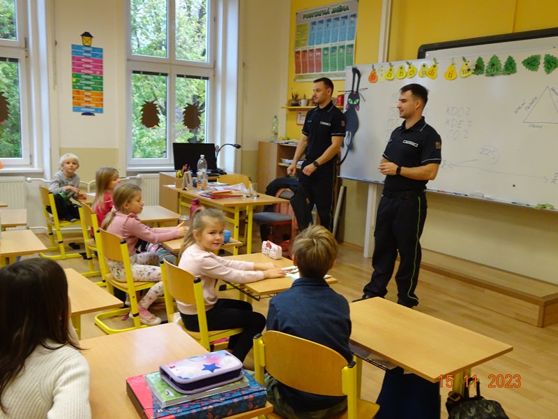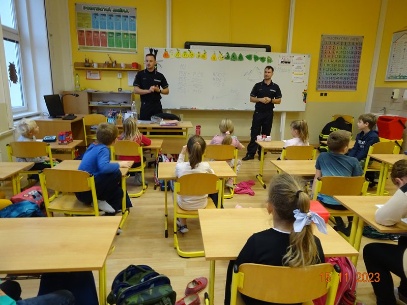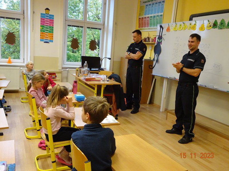 Ve středu 15. listopadu 2023 měli žáci 2. ročníku zajímavou návštěvu. Přijeli je navštívit členové Hasičského záchranného sboru Olomouckého kraje. V rámci své preventivně výchovné činnosti připravili pro žáky vzdělávací a výukový program „Výchova dětí v oblasti požární ochrany a ochrany obyvatelstva“ přizpůsobený jejich věku.