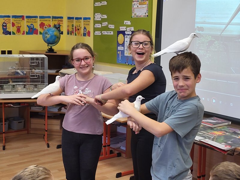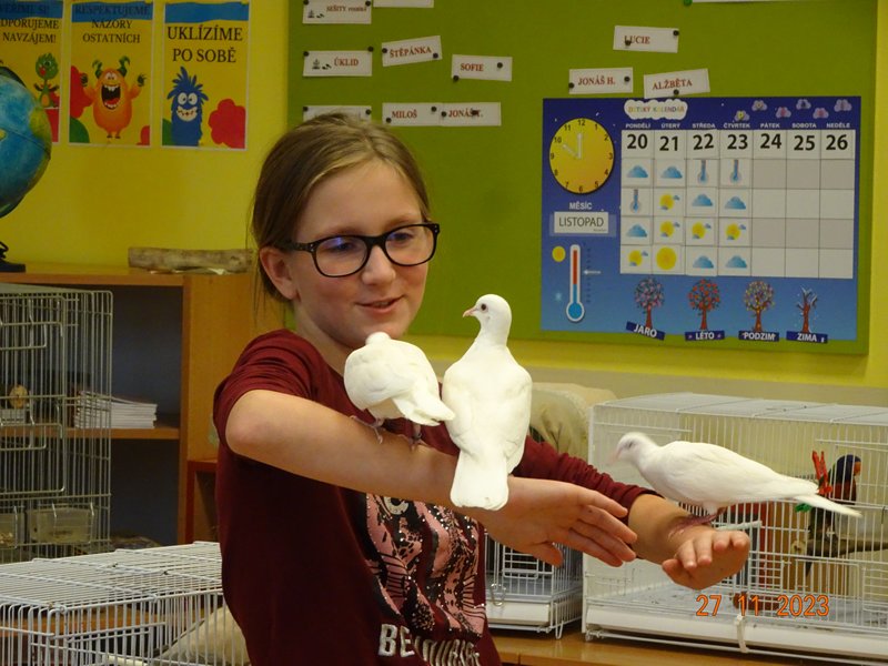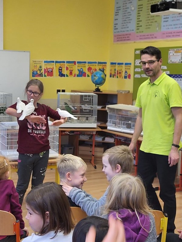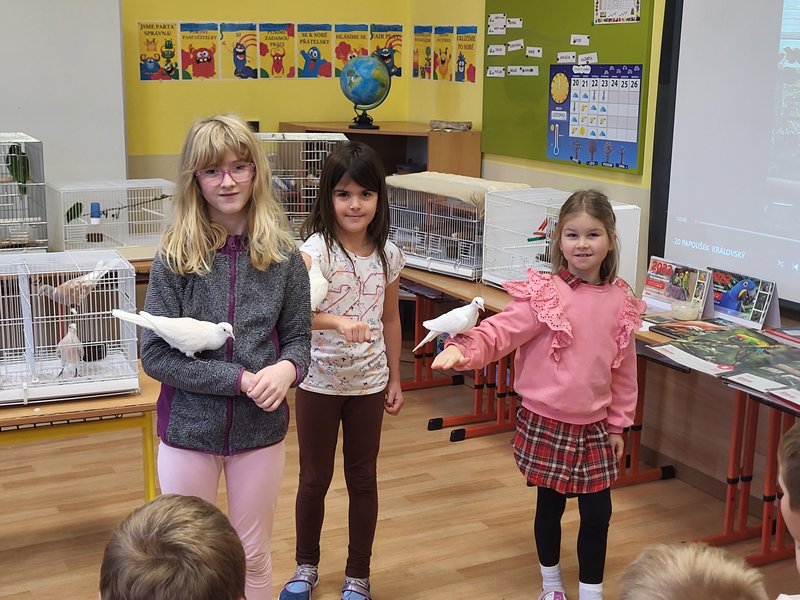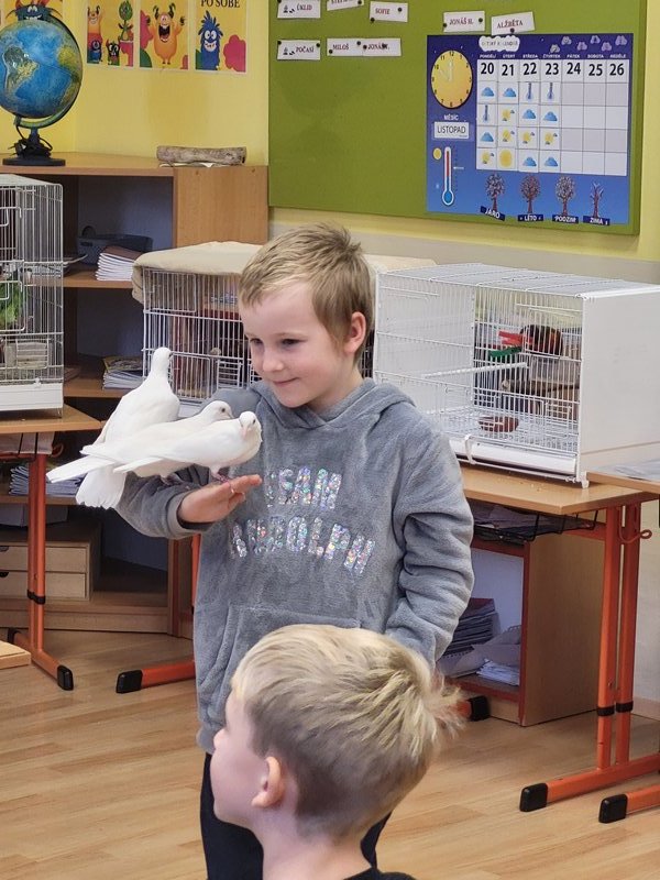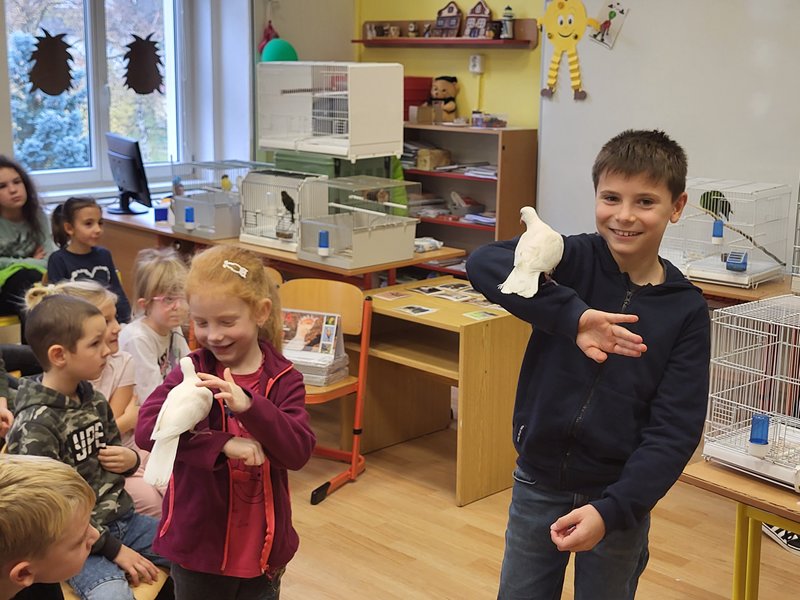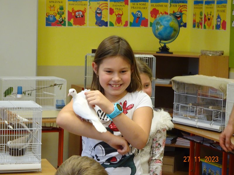 V pondělí 27. listopadu 2023 se uskutečnila pro žáky naší školy v pořadí již druhá zajímavá beseda „Od záchranných programů k chovatelství“, se kterým přišel do naší školy opět RNDr. Bc. Jaromír Vachutka, učitel, dlouholetý chovatel a držitel titulu Mistr Evropy a bronzové medaile z Mistrovství světa se svými opeřenci.