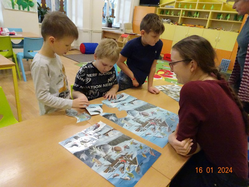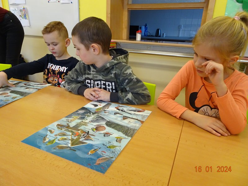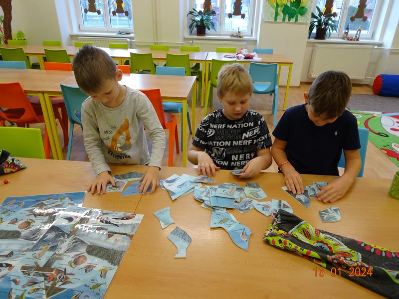 Dozvěděli jsme se, čím přikrmovat ptáky v zimě, seznámili jsme se s různými druhy ptáků, zaměřili jsme se na jejich ochranu, prozkoumali různé ptačí zobáky, zahráli několik pohybových her a vyrobili samolepku na okno se siluetou dravce.