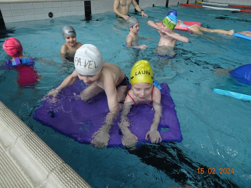 Plavecký výcvik zahájili žáci 1. - 5. ročníku ve čtvrtek 8. února 2024. Plavou v Městských lázních v Prostějově pod odborným dohledem učitelek a učitelů z Plavecké školy při ZŠ Dr. Horáka v Prostějově. Čeká nás deset dvouhodinových lekcí, při kterých se někteří naučí základům plavání, a jiní se zdokonalí ve svém plaveckém umění. Umět plavat patří mezi základní dovednosti každého člověka.