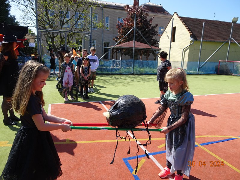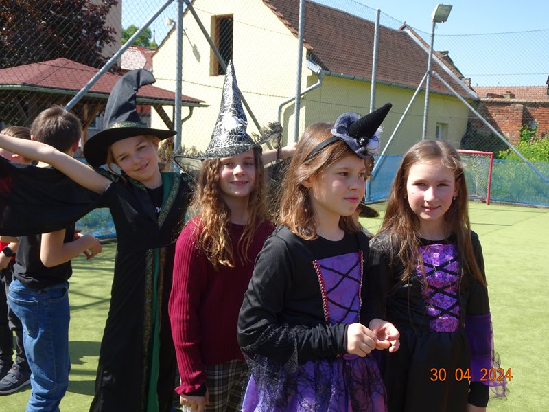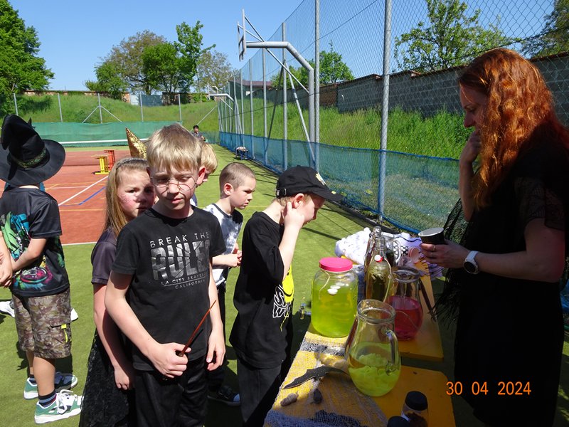 V úterý 30. dubna 2024 si v naší Čarodějnické škole dali opět svůj slet čarodějové a čarodějnice. Svá kouzla a čáry předváděli nejdřív v českém jazyce a matematice, potom následovaly dvě hodiny čarodějnických soutěží na školním hřišti. V čarodějnickém koutku podávala čarodějka Hanka kouzelné lektvary různých příchutí. Počasí nám vyšlo a čarodějný den jsme si náramně užili.