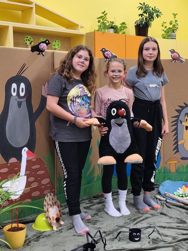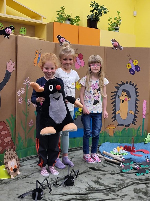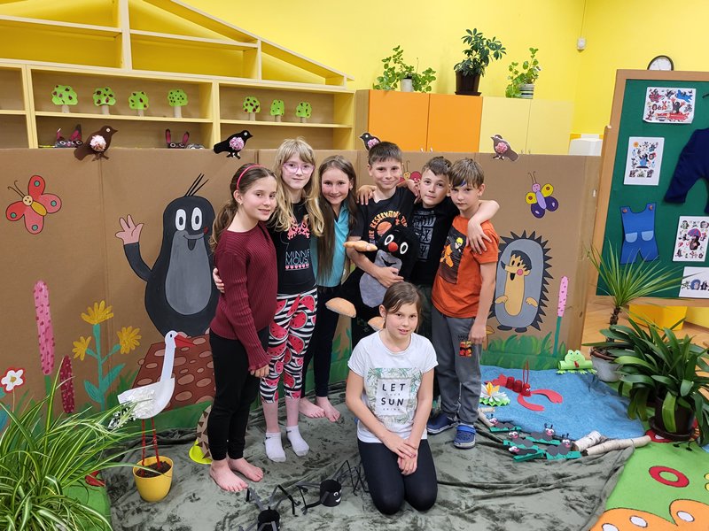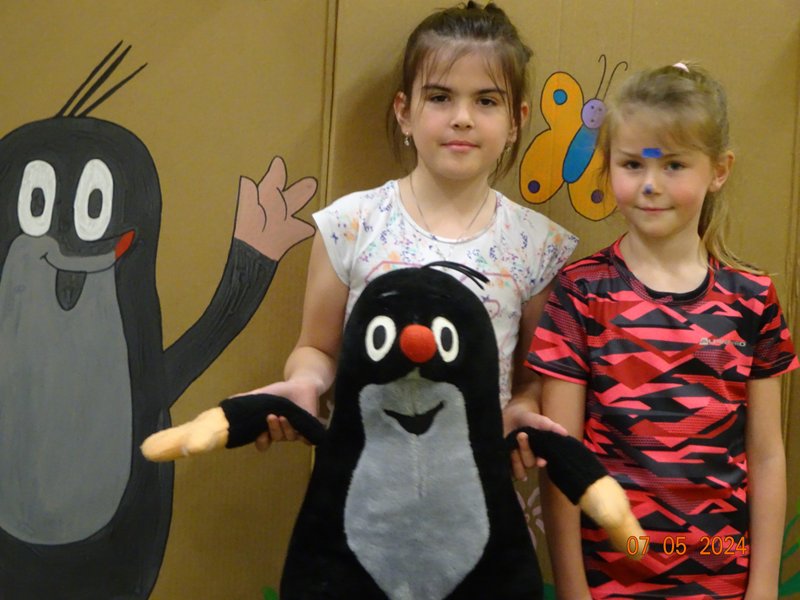 Už od 17.30 hodin přicházeli první zájemci do školy. Připravili si svoje místa na spaní a rozloučili se se svými rodiči. Zábava Andersenovy noci mohla začít. Pan Andersen nás letos nenavštívil, ale vyřídil pozdravy po paní ředitelce. Potom jsme se od paní asistentky dozvěděli mnoho informací o našem spisovateli Eduardu Petiškovi, který by se letos dožil 100 let a o malíři Zdeňku Milerovi. Oba společně vytvořili řadu knížek o krtečkovi. Jeho namalovaná postavička byla vstupenkou na letošní spaní ve škole.Paní asistentka připravila pro děti řadu úkolů, ve kterých se tato postavička objevila. Děti si poslechly část pohádky Jak krtek ke kalhotkám přišel, vyplňovaly pracovní listy, potom ze stejné knížky zástupci jednotlivých družstev postupně četli. Po občerstvení v podobě výborné pizzy děti vyráběly krtkovy kalhotky a pak následoval krtkův pětiboj. Děti poznávaly hudební nástroje, domalovávaly poloviny zvířátek, vymalovávaly obrázky, vyluštily bludiště, v tělocvičně hádaly obrysy zvířátek a hrály hry – káča, labyrint, dřevěné puzzle, házení na terč. Po setmění se vydaly na cestu večerní školou, kdy měly za úkol přesně spočítat, kolik se ve škole ukrývá krtečkových kamarádů. Občas se ozývaly strašidelné zvuky, ale všichni došli do cíle a správně spočítali krtečkovy kamarády. Pak jsme se už pomalu ukládali do pelíšků. Podívali jsme se na film, mladší děti brzy usnuly, ale starší vydržely být vzhůru docela dlouho. Ráno jsme se sbalili a po dobré snídani (maminky opět napekly výborné koláčky) jsme se vydali domů.