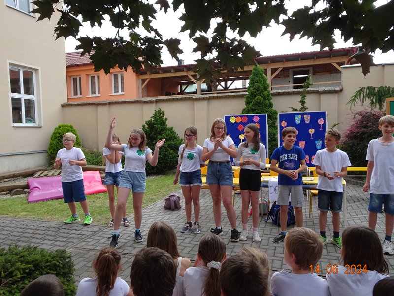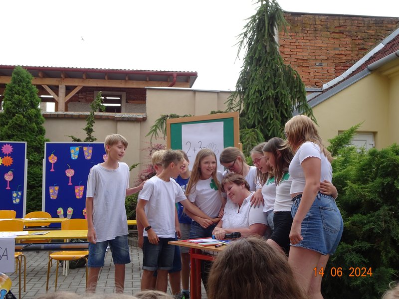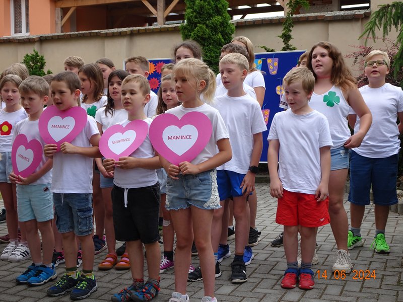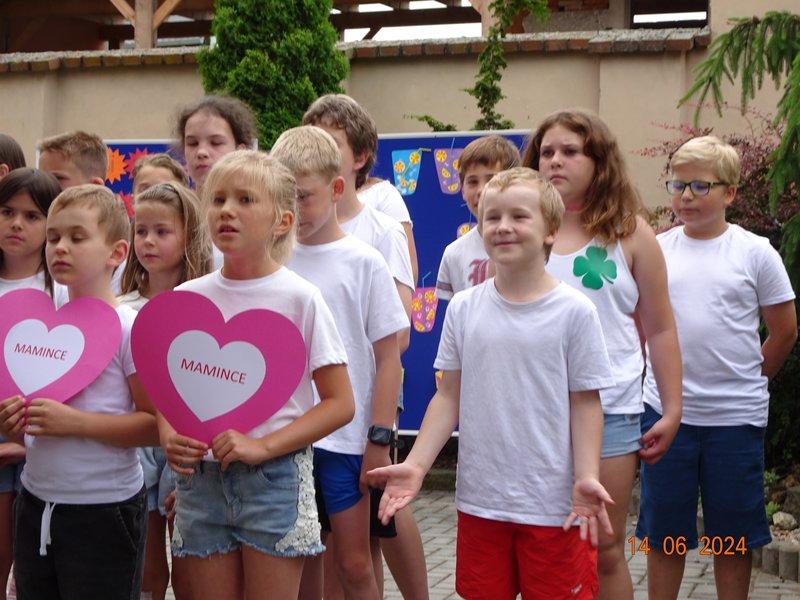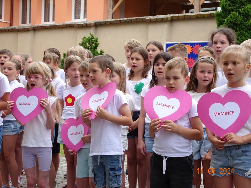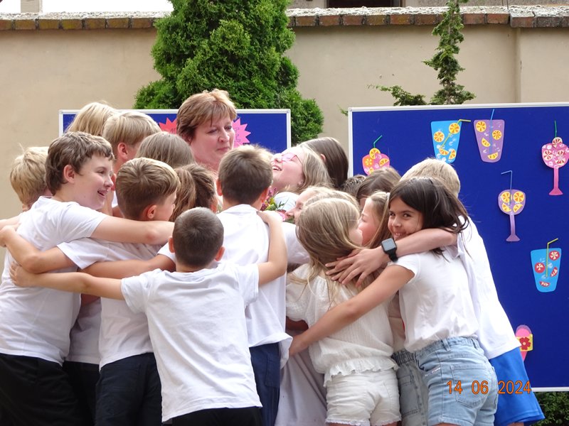 V pátek 14. června 2024 jsme se sešli na naší školní zahradě, abychom opožděně popřáli našim maminkám k jejich květnovému svátku a zároveň se rozloučili s našimi páťáky, kteří odcházejí z naší školy na druhý stupeň. Přejeme jim v dalších letech mnoho úspěchů. Také jsme se rozloučili s paní ředitelkou Žondrovou, která odchází do důchodu.