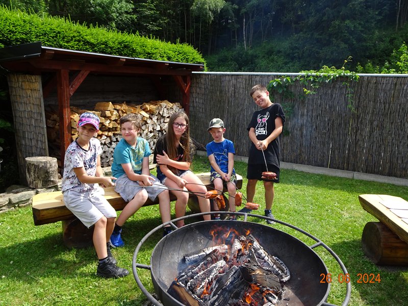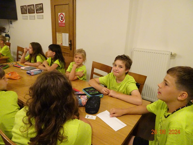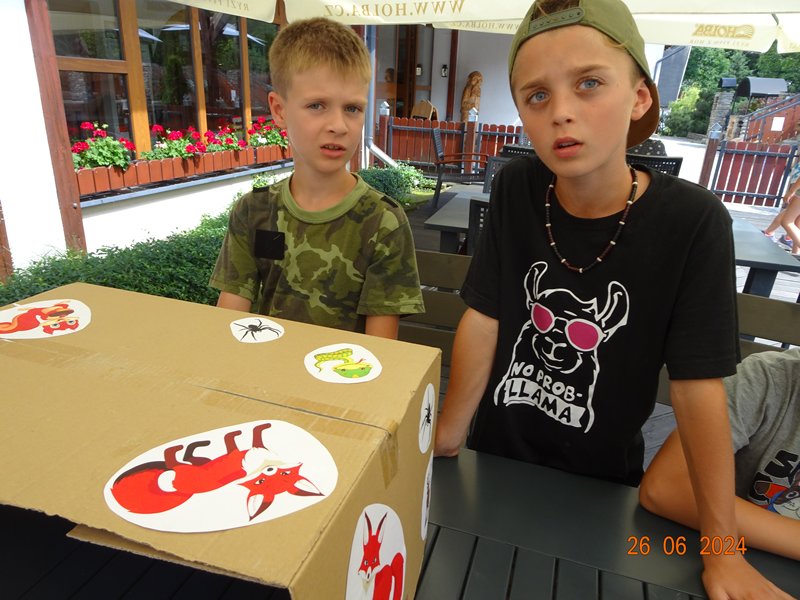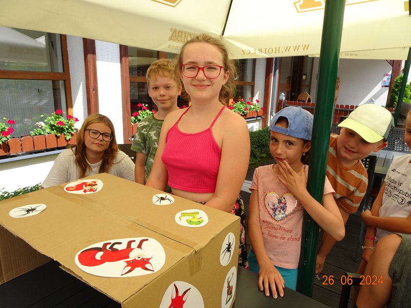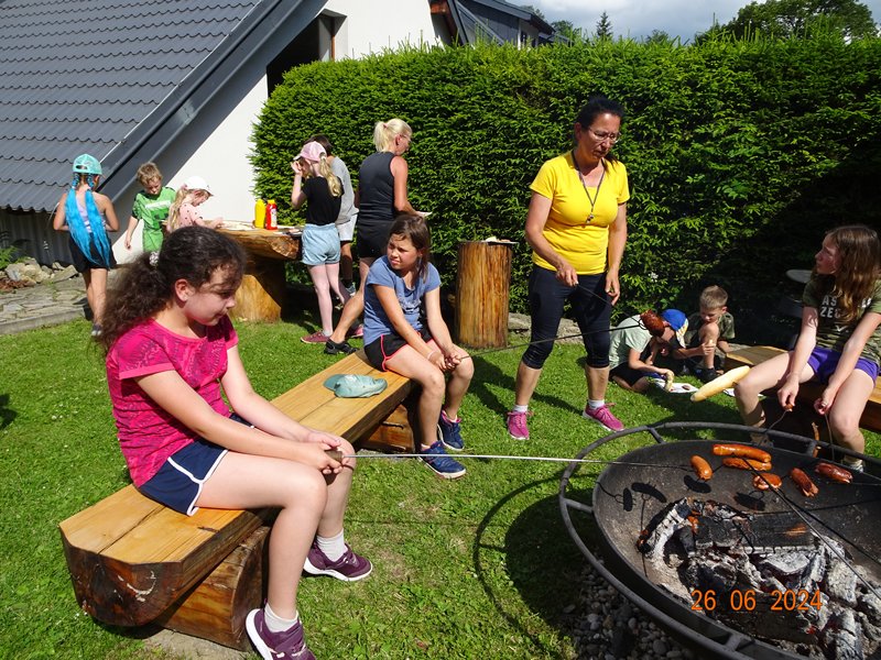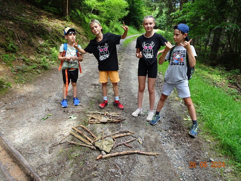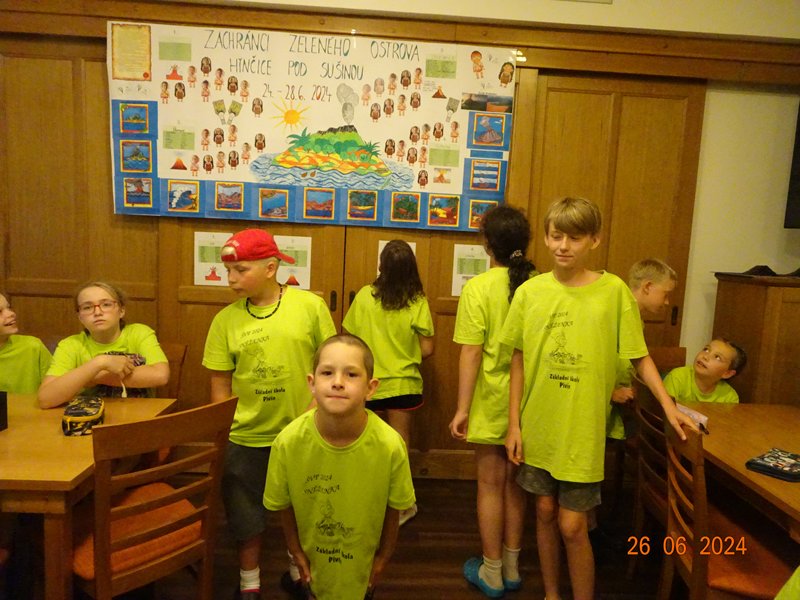 I dnešní den jsme pokračovali v záchraně Zeleného ostrova. Při vycházce do lesa jsme poznávali rostliny a vytvářeli pavoučky z přírodních materiálů. Po návratu na ostrov jsme poznávali vodní živočichy, hráli hry, opékali špekáčky a koupali se v bazénu. Někteří domorodci si užívali ve vířivce. Počasí bylo krásné, zábavy bylo dost a místní kuchyně je také výborná. Všichni jsou zdraví.