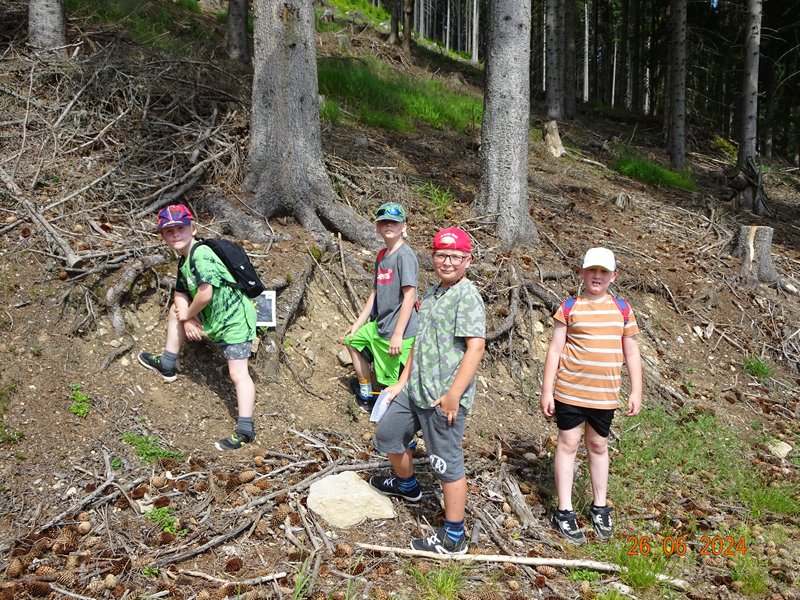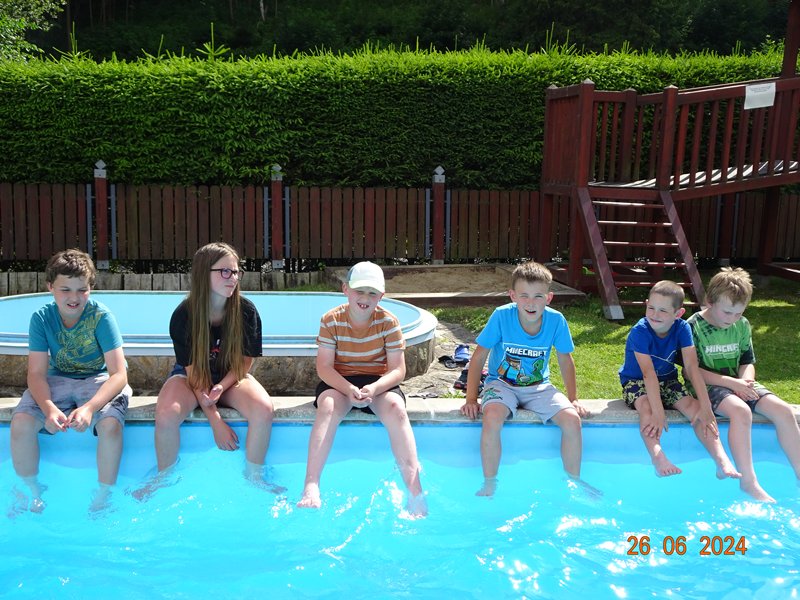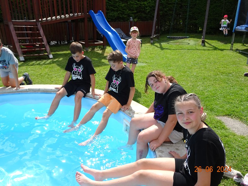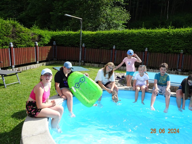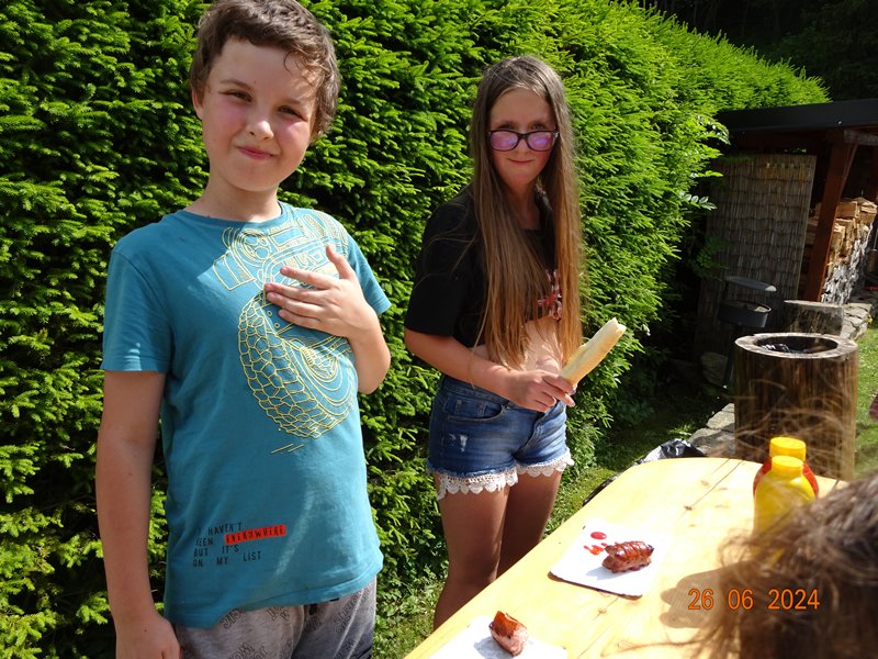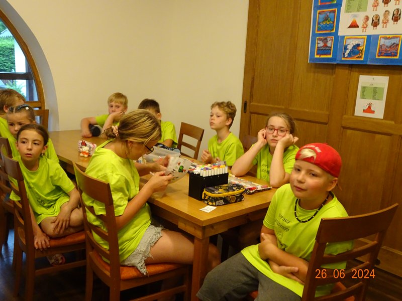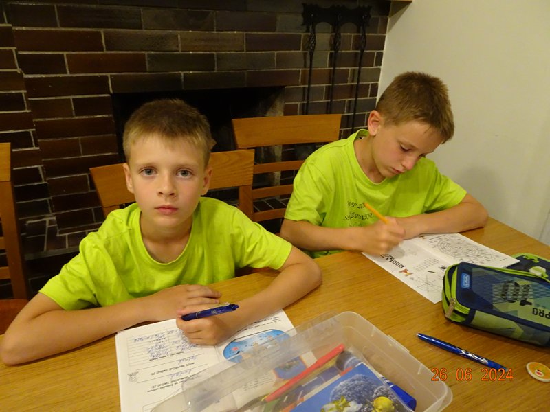 I dnešní den jsme pokračovali v záchraně Zeleného ostrova. Při vycházce do lesa jsme poznávali rostliny a vytvářeli pavoučky z přírodních materiálů. Po návratu na ostrov jsme poznávali vodní živočichy, hráli hry, opékali špekáčky a koupali se v bazénu. Někteří domorodci si užívali ve vířivce. Počasí bylo krásné, zábavy bylo dost a místní kuchyně je také výborná. Všichni jsou zdraví.