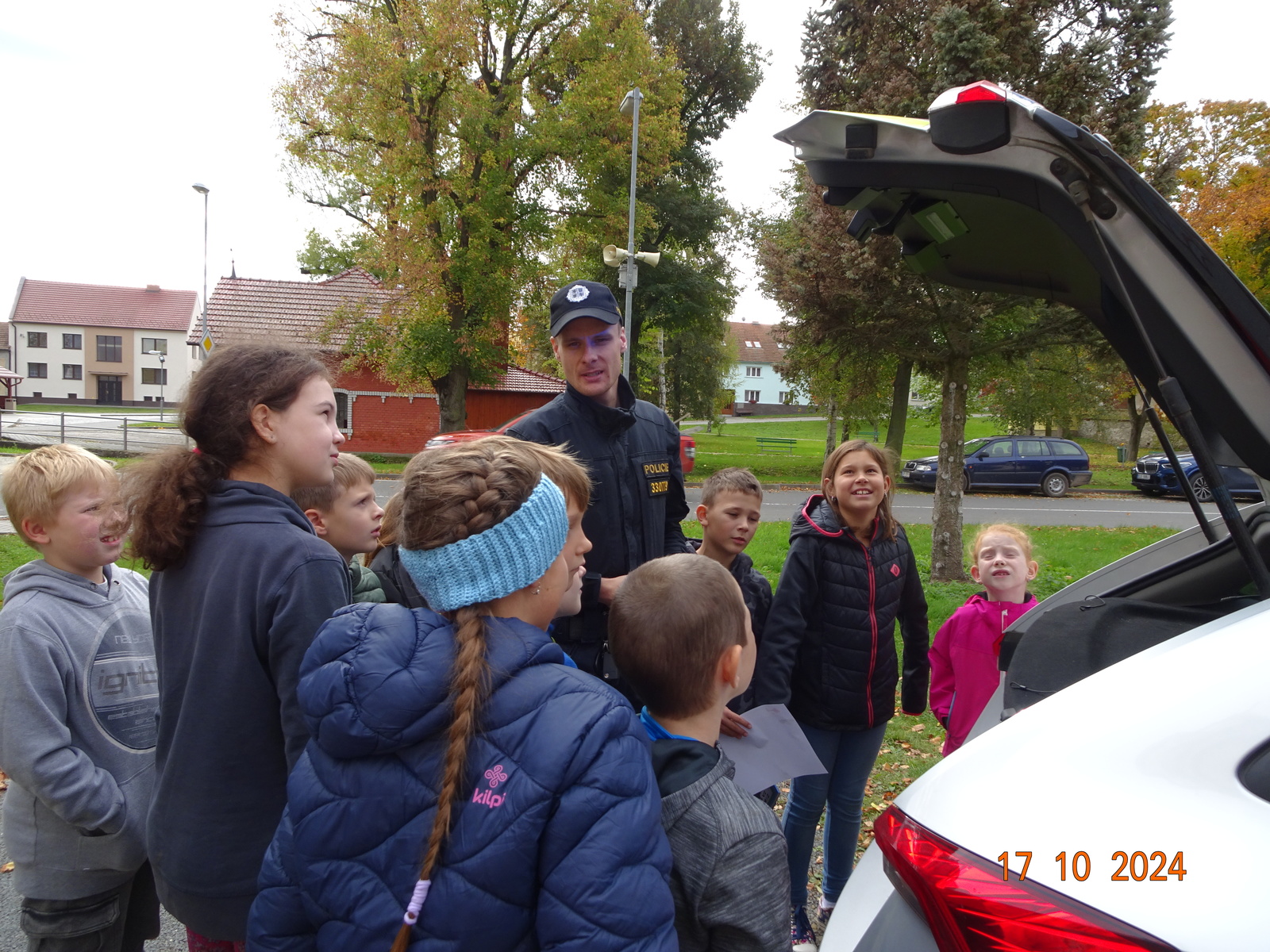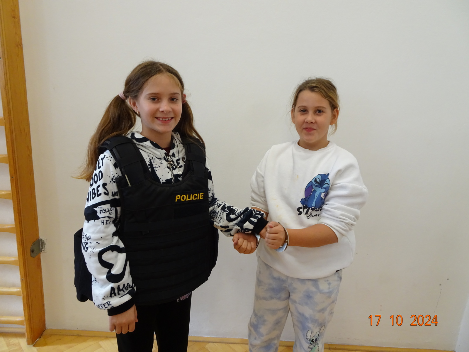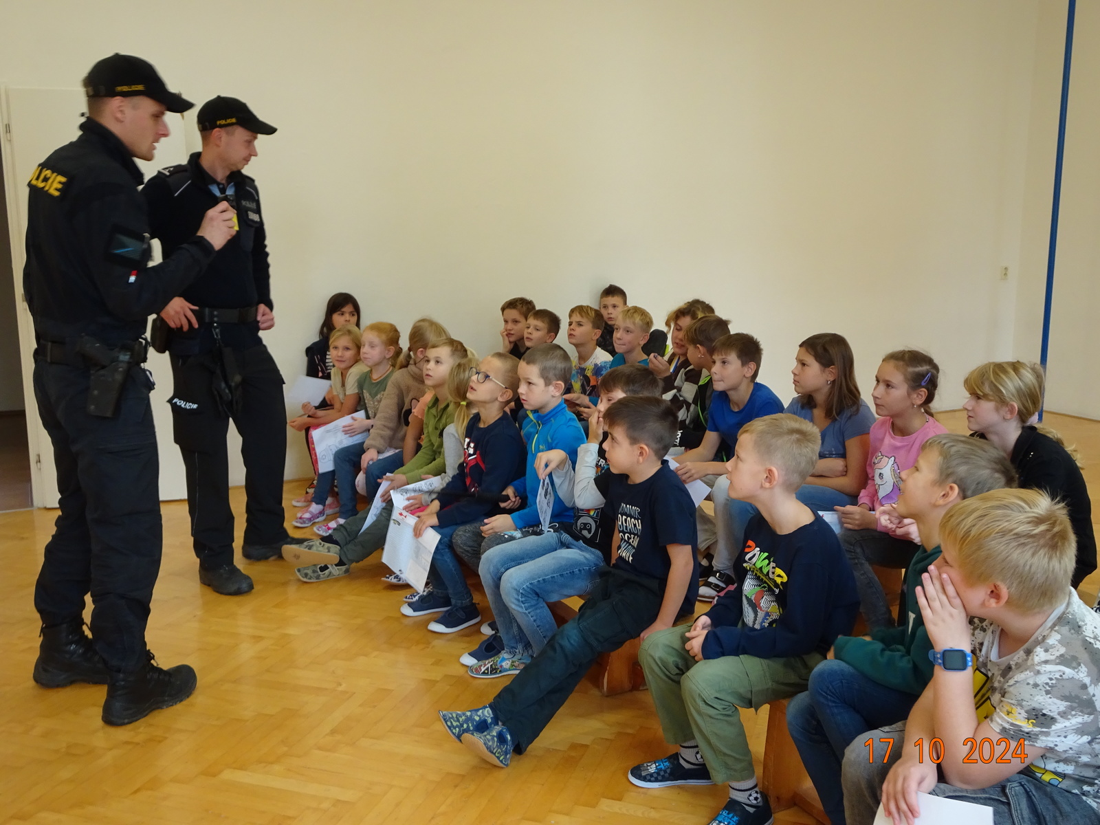 Součásti týdne bezpečí byla také přednáška Policie ČR zaměřená na bezpečnost a chování v silničním provozu, ale také při využívání internetu. Děti byly nadšené, že si mohly vyzkoušet policejní vesty nebo pouta. Na závěr si mohly prohlédnout i policejní služební vůz.