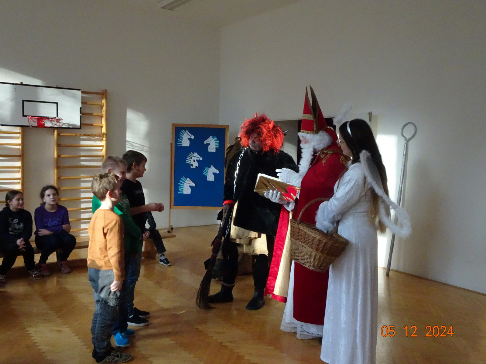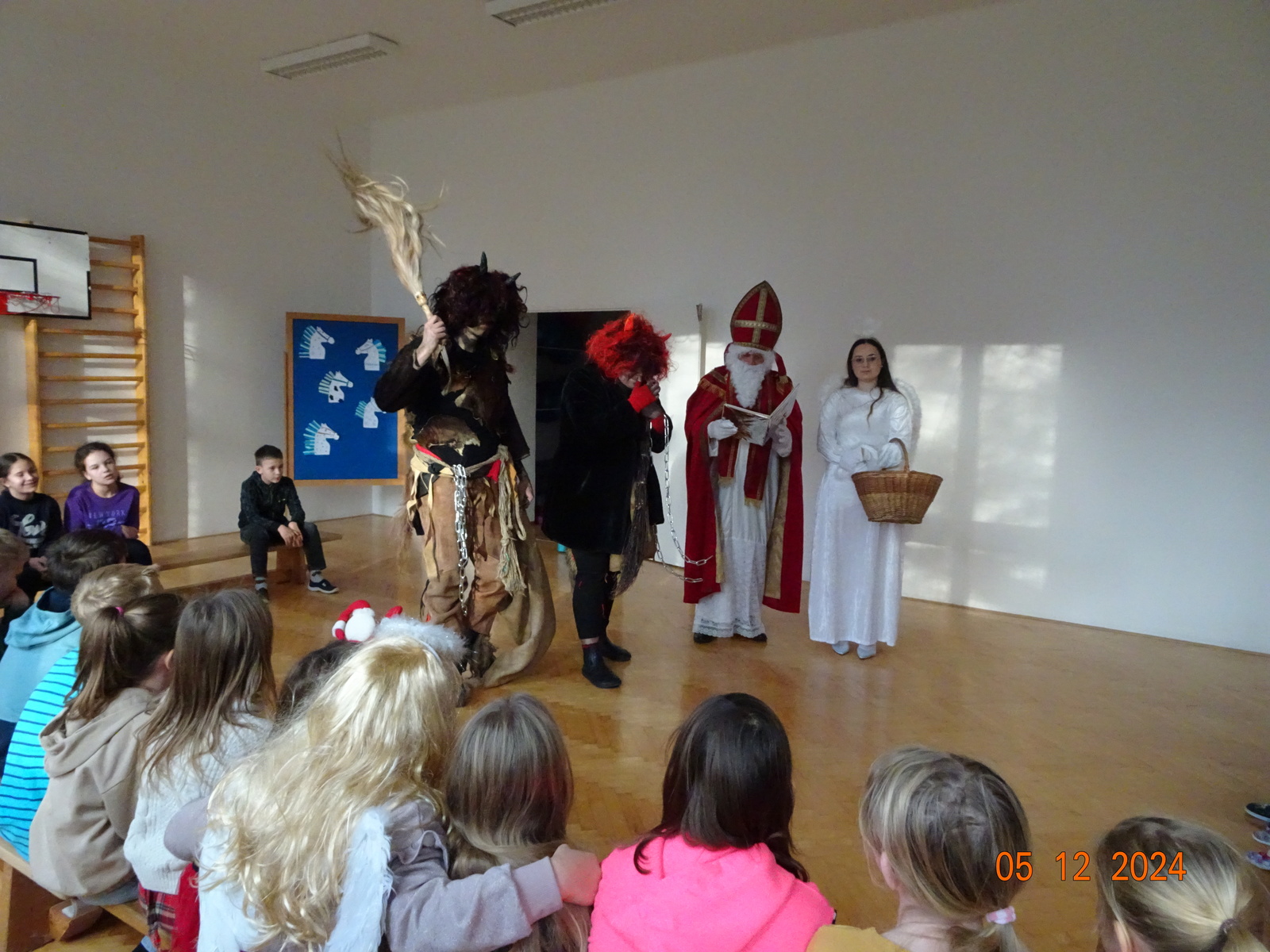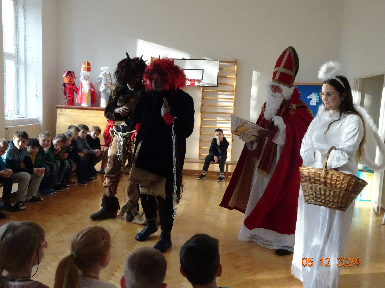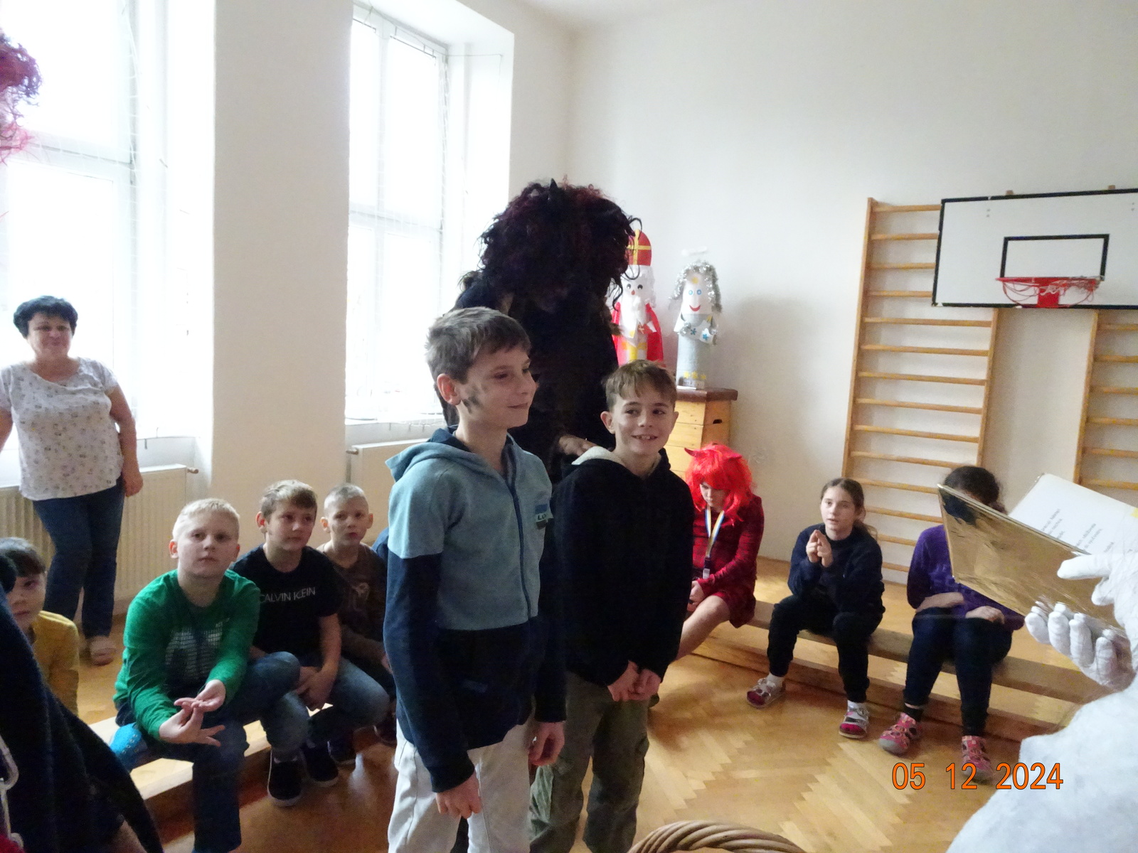 Ve čtvrtek 5. prosince navštívil naši školu svatý Mikuláš spolu s čerty a andělem. Mikuláš pochválil děti, které byly celý rok hodné. Ale pokáral i ty, které přes rok dělaly neplechu. Jelikož má peklo pro letošek již naplněnou kapacitu, nikoho z dětí si čerti neodnesli.
