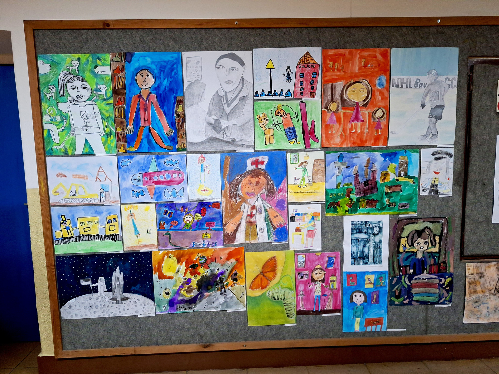 Naše žáky nebylo třeba dlouho přemlouvat. Verunka, Anetka, Vikinka, Mia, Anička, Terezka a Lucinka se s nadšením pustily do práce a během 14 dnů ztvárnily své představy o budoucím povolání. Na výkresech se objevily zdravotní sestřičky, prodavačky v Superzoo, jezdkyně na koni, veterinářky a mnoho dalších snů o profesní budoucnosti.