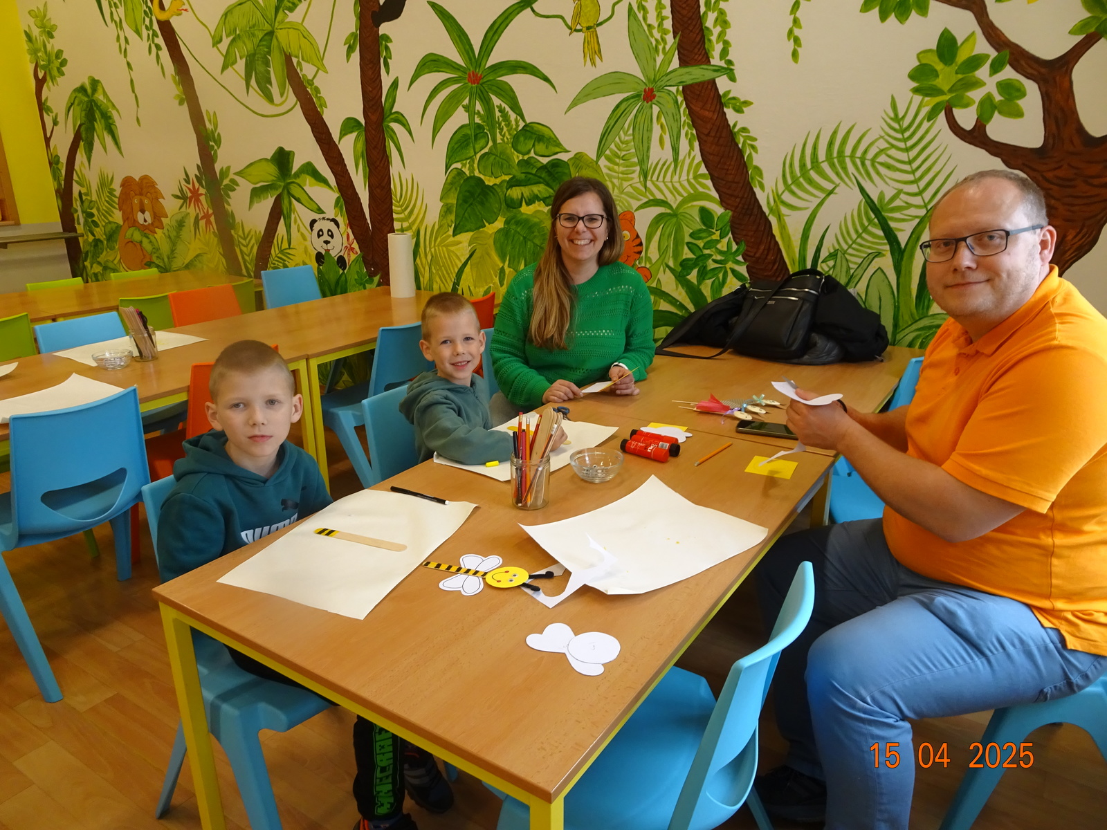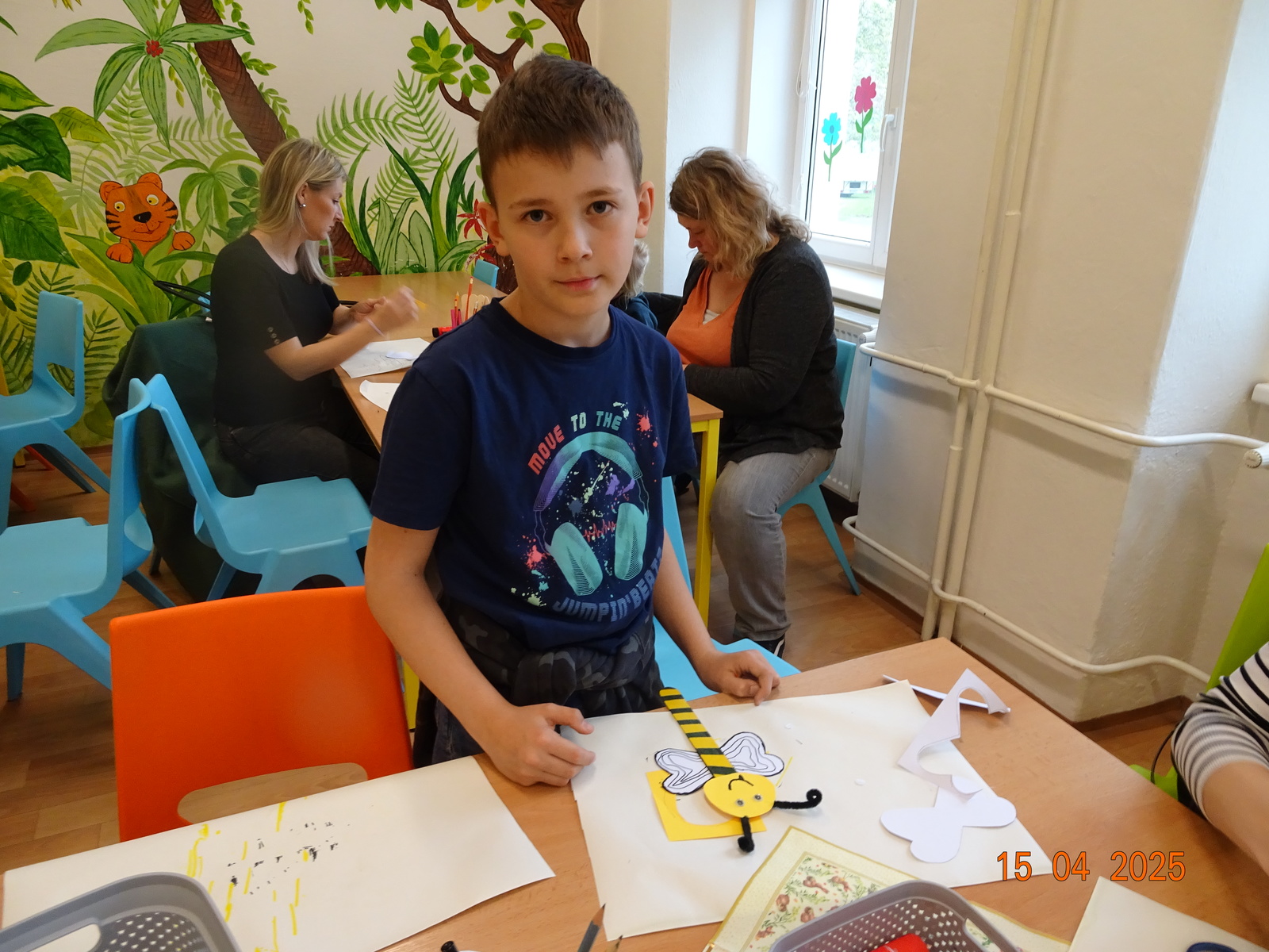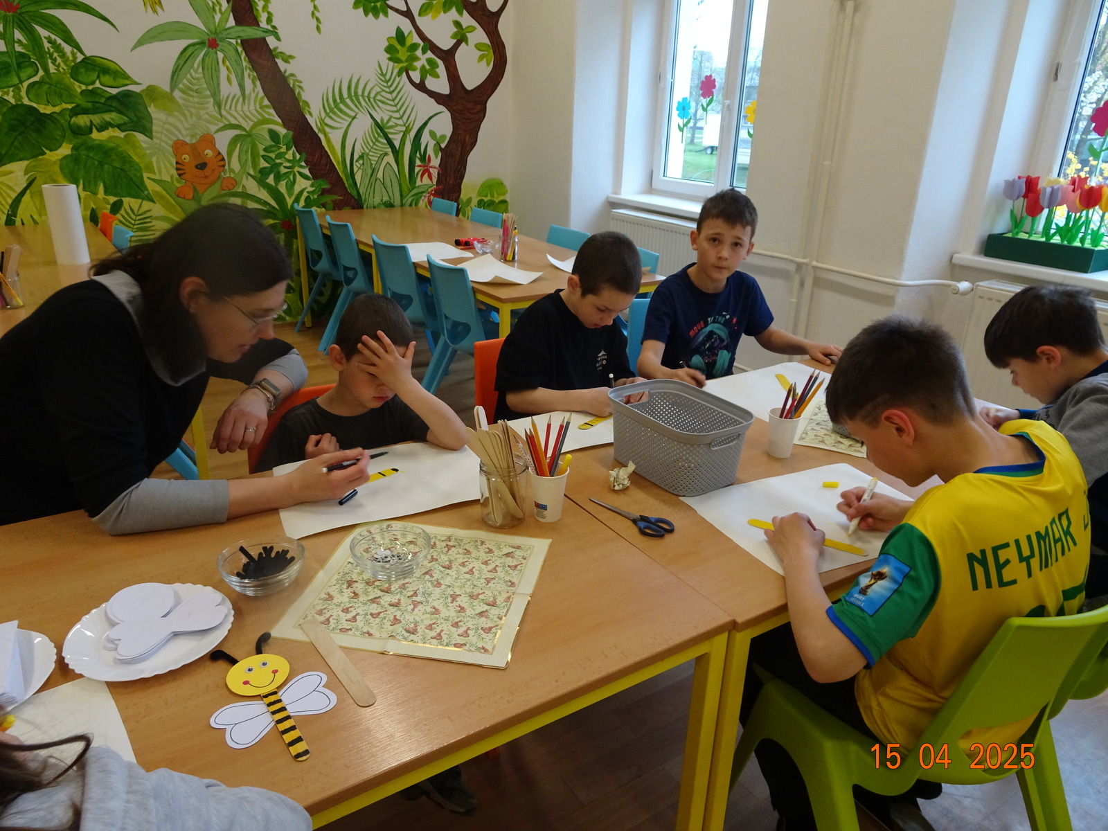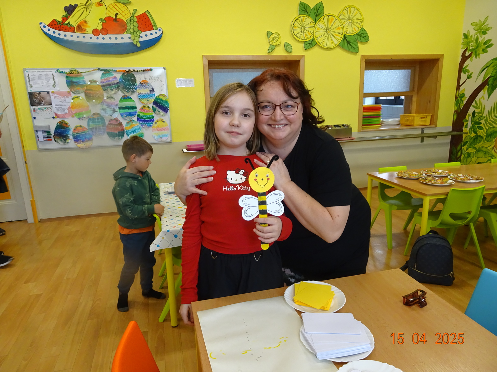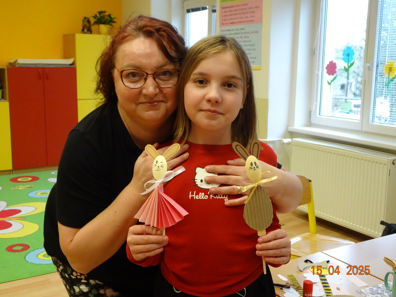 15. dubna 2025 se na naší škole konala jarní předvelikonoční výtvarná dílna pro děti a rodiče. Pozvání přijali rodiče, prarodiče a sourozenci. Na prvním stanovišti si vyrobily včelku a na druhém stanovišti zajíčky. Všichni měli radost ze svých výrobků.