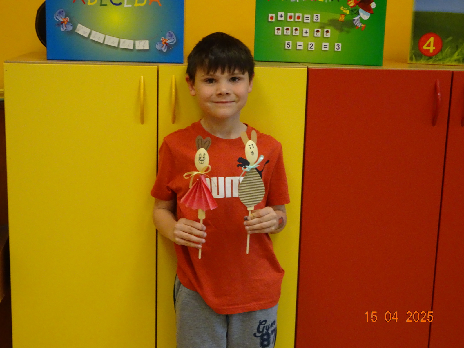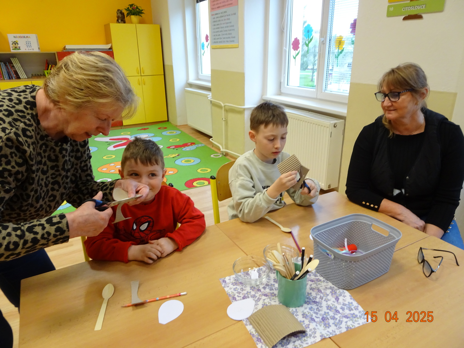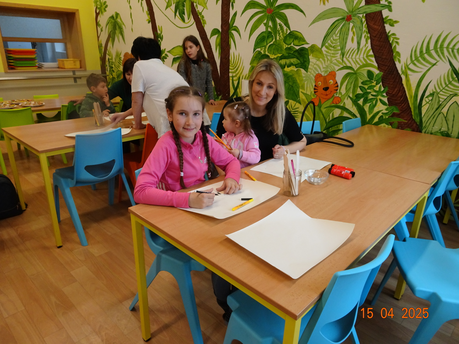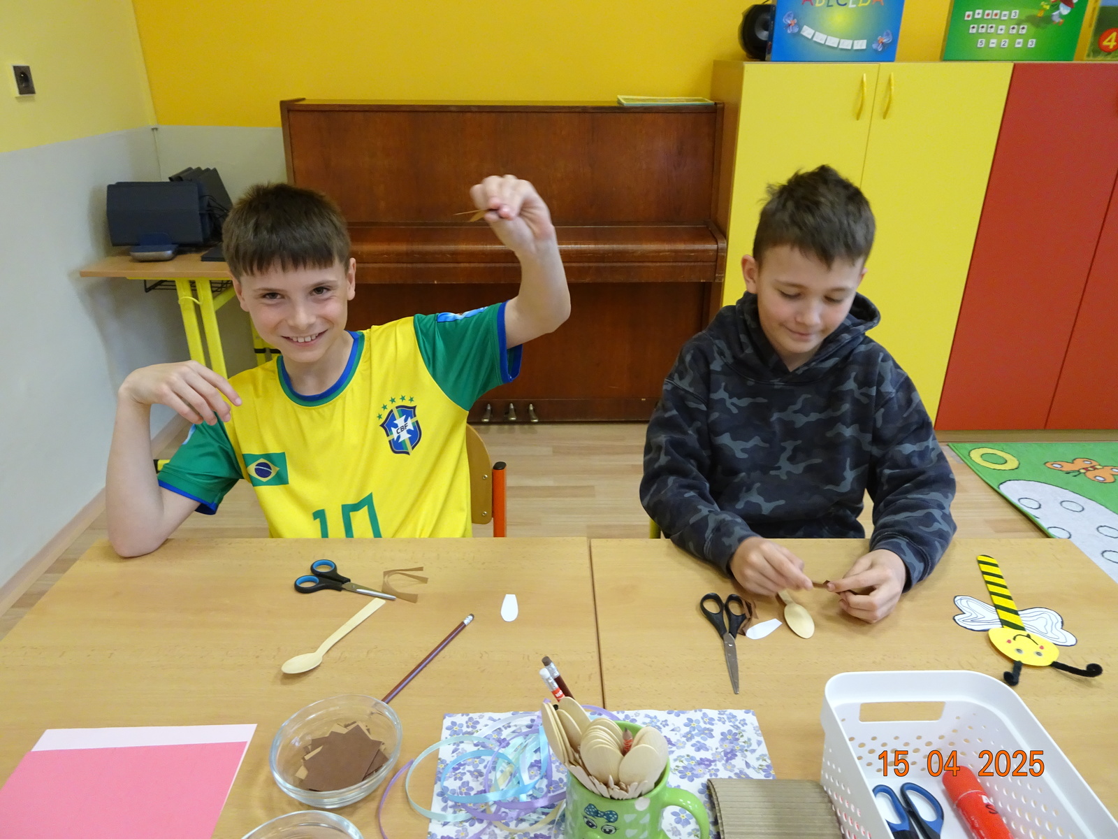 15. dubna 2025 se na naší škole konala jarní předvelikonoční výtvarná dílna pro děti a rodiče. Pozvání přijali rodiče, prarodiče a sourozenci. Na prvním stanovišti si vyrobily včelku a na druhém stanovišti zajíčky. Všichni měli radost ze svých výrobků.