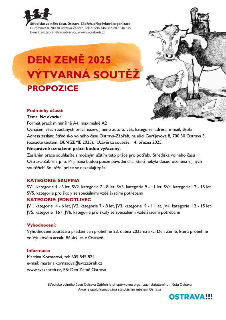 Středisko volného času Ostrava–Zábřeh na jaře vyhlásilo výtvarnou soutěž s názvem Na dvorku. Děti z druhého oddělení školní družiny neváhaly a s nadšením se do soutěže zapojily.