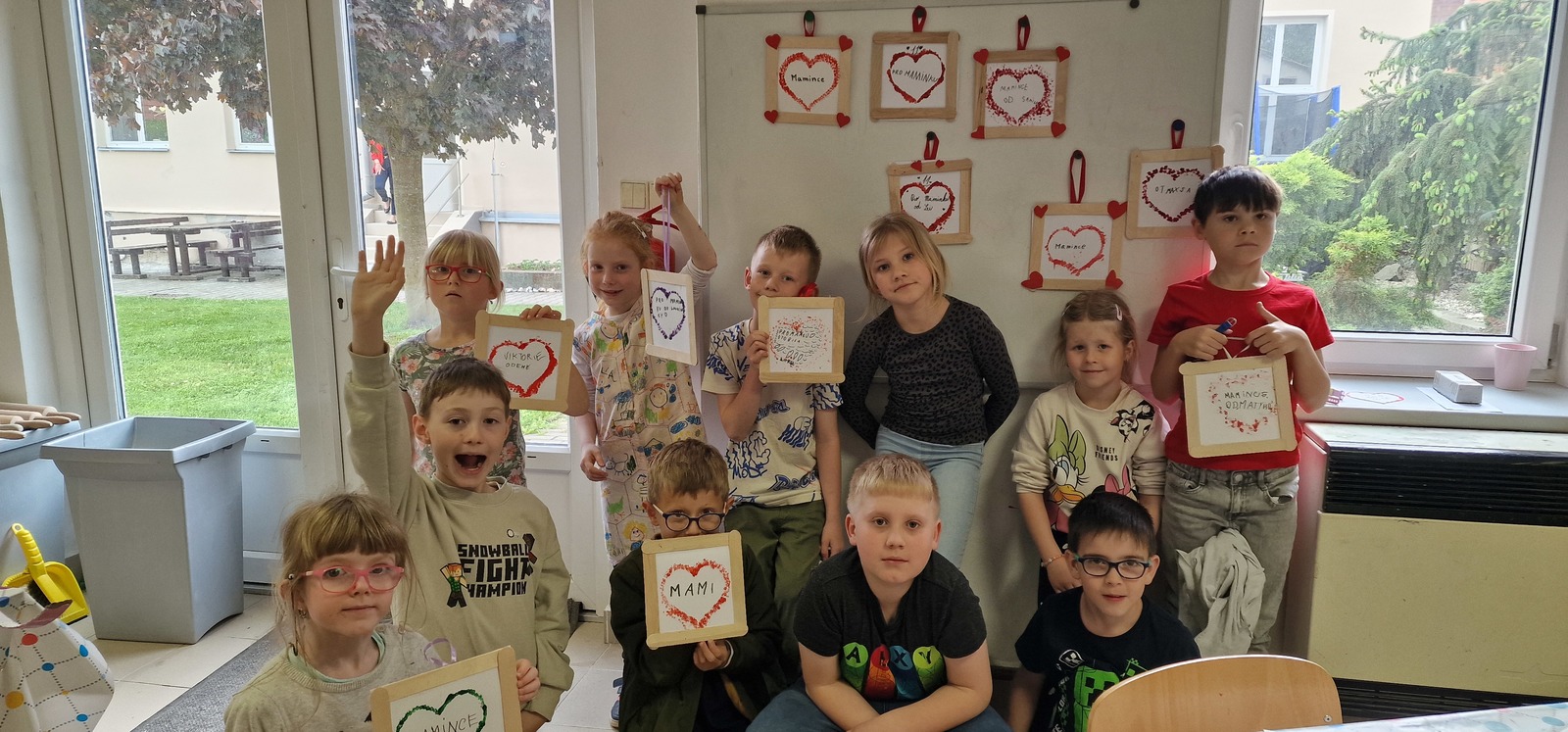 Děti vytvořily pro maminky pěkný dárek z netradičního materiálu.