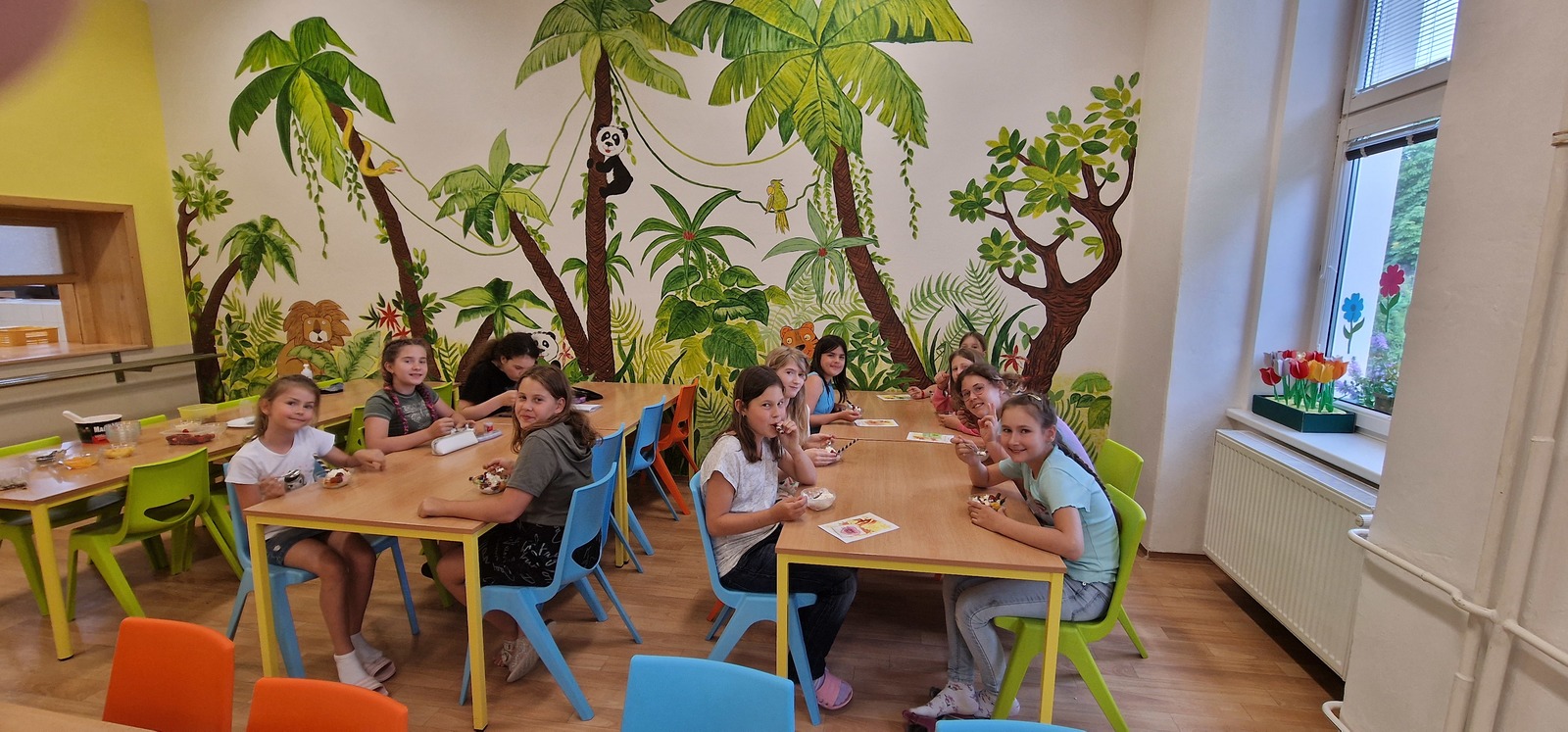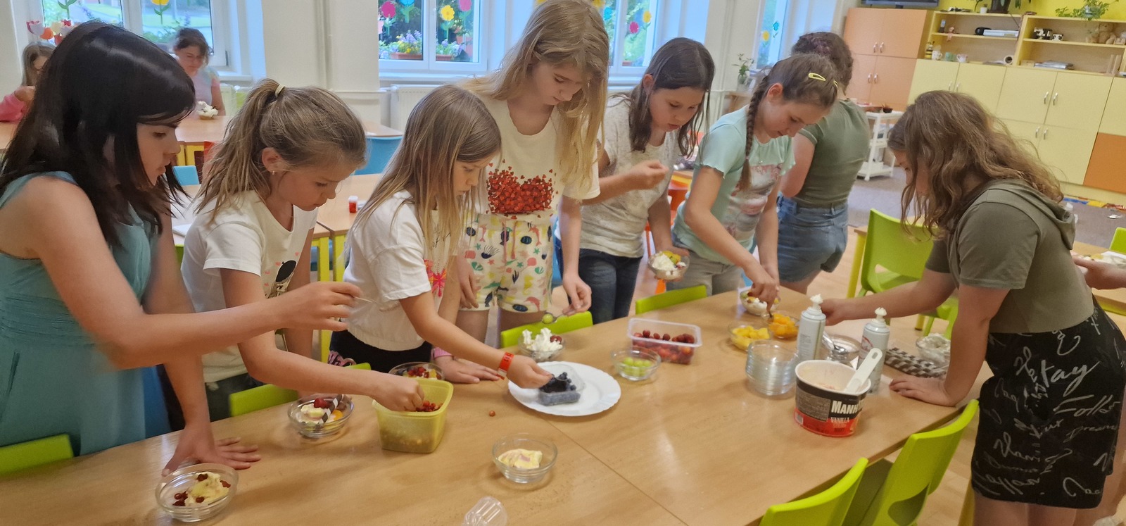 V pondělí 16.6. jsme si s dětmi udělali sladkou tečku za posledním výtvarným kroužkem. Děti si připravovaly zmrzlinové poháry s ovocem.