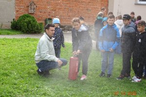 Dne 7. 10. v rámci týdne bezpečí navštívil naši školu odborník na požární ochranu pan Ivo Šimek. Proběhla praktická ukázka hasících přístrojů a cvičné požární cvičení. Žáci měli možnost si použití hasících přístrojů vyzkoušet i sami.